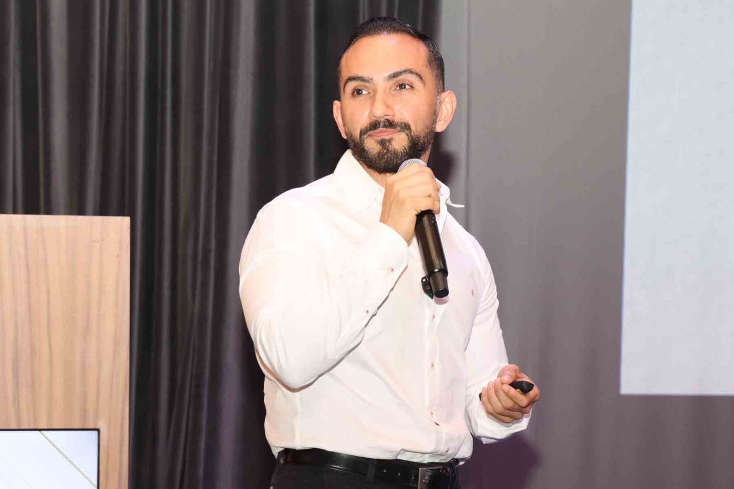 El Mtro. Gerardo Mercado López durante su conferencia en la UAG sobre adicciones comportamentales.