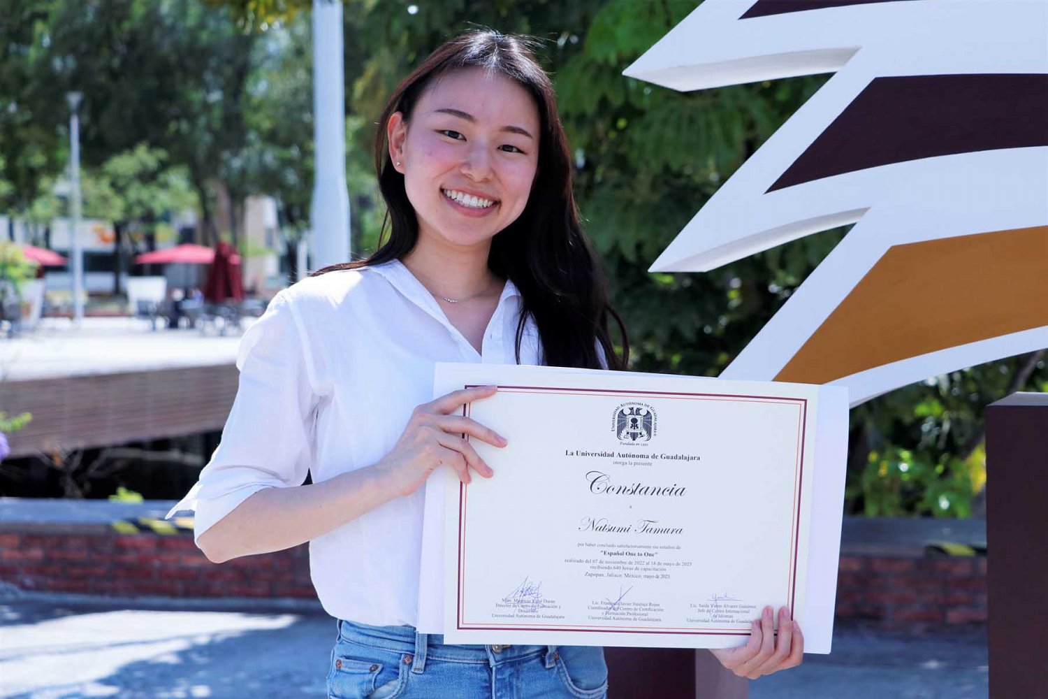 Desde noviembre del 2022, Natsumi Tamura se ha dedicado a estudiar español y en la UAG le pareció una buena universidad, con un campus bonito, lleno de árboles y seguro. Además, le gustan mucho sus clases con sus maestros.