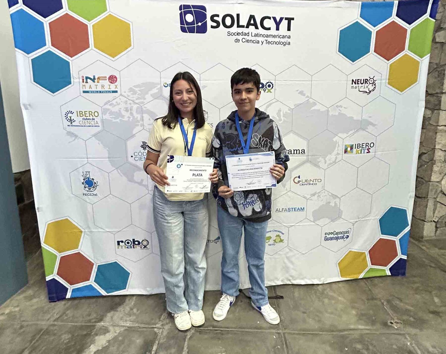 Los estudiantes Elizabeth Valenzuela Hernández y Jasiel Padilla Álvarez, de preparatoria de la Escuela Antonio Caso Zapopan, del Sistema Educativo de la Universidad Autónoma de Guadalajara (UAG), consiguieron medalla de plata en la XIII edición de Código Ciencia–ExpoCiencias Jalisco.