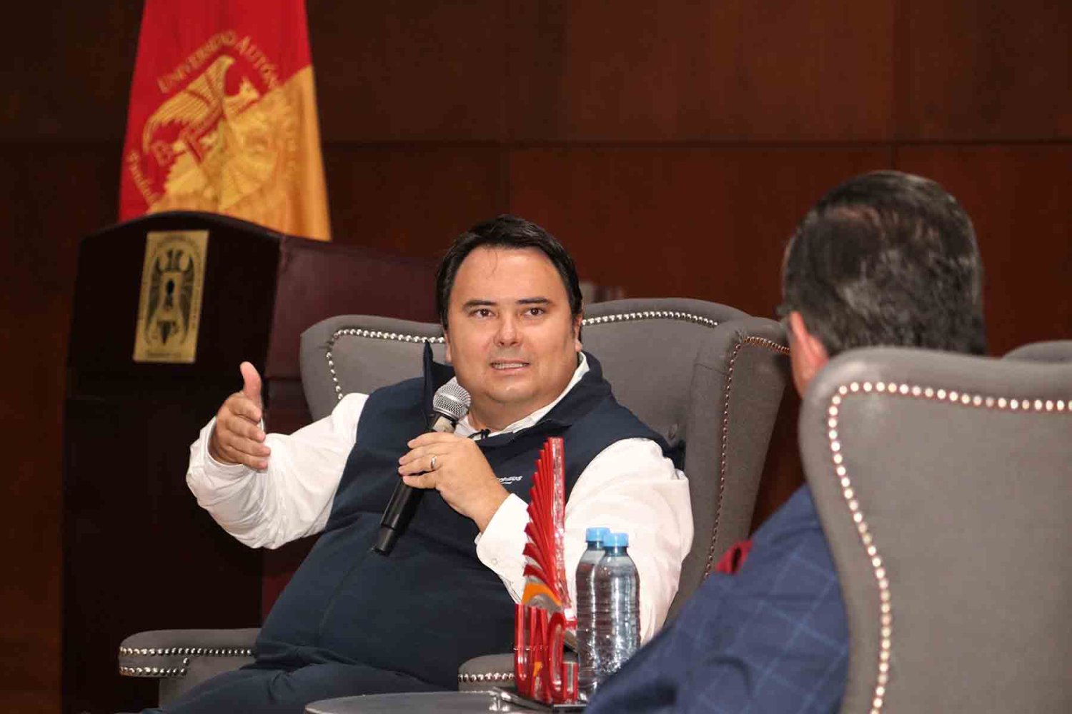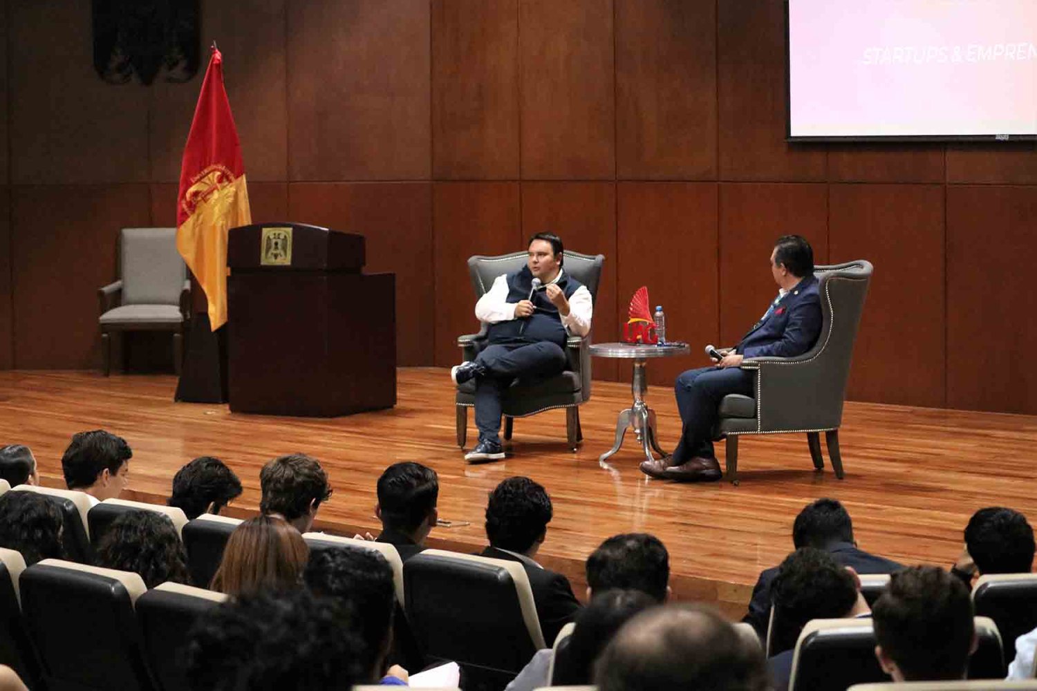 Tras la bienvenida se tuvo la plática entre el Mtro. Hugo Raúl Blum Casillas, CEO y fundador de 100