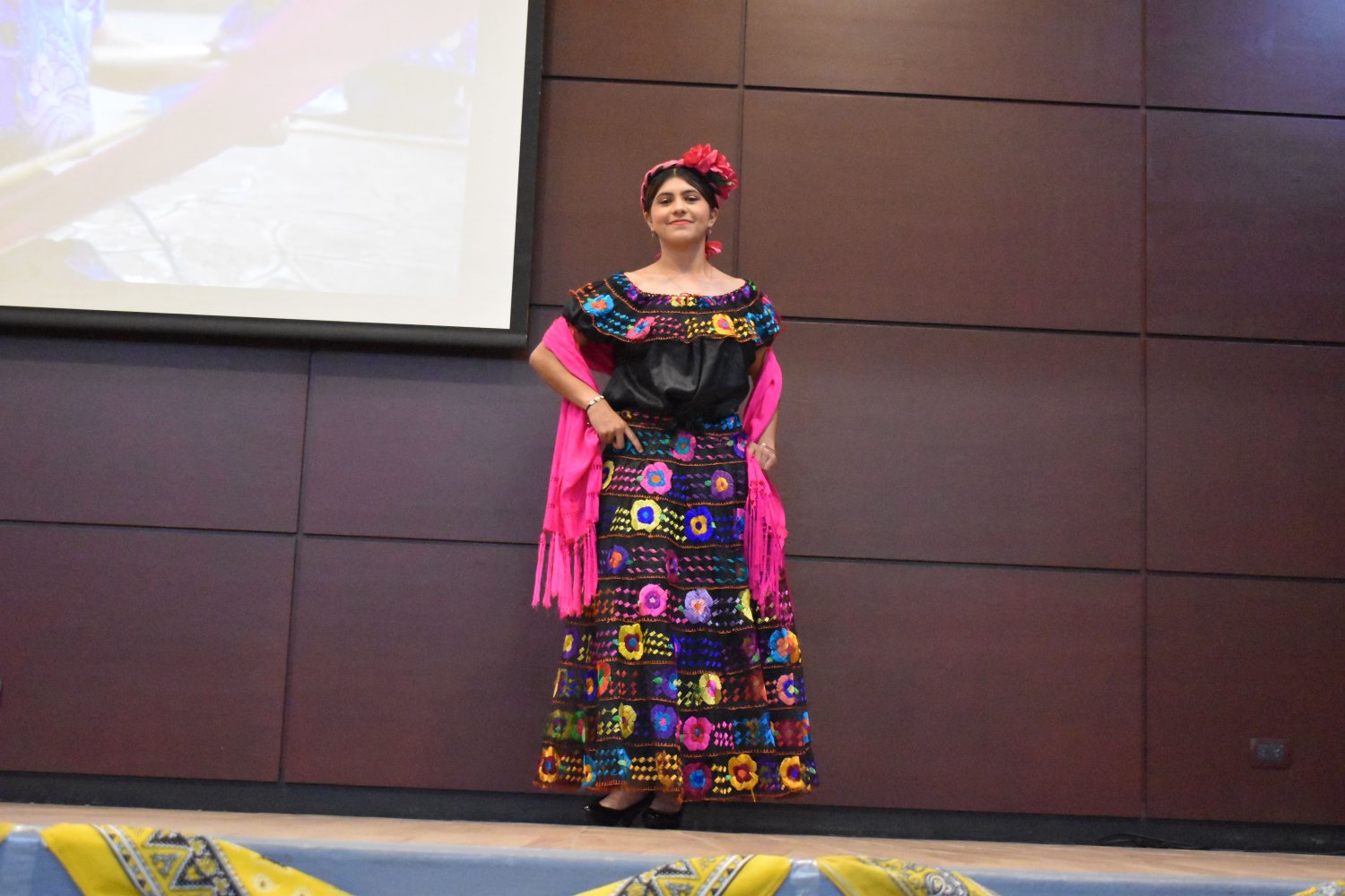 Posteriormente, se llevó a cabo el Concurso de Trajes Típicos, uno de los momentos más esperados del evento. Estudiantes de diferentes programas académicos desfilaron por el escenario portando atuendos tradicionales de distintos estados, mostrando una combinación de elegancia, identidad y creatividad. Los participantes no solo modelaron sus vestuarios, sino que también compartieron breves relatos sobre el origen y significado de cada traje, ofreciendo a los presentes un encuentro enriquecedor con las expresiones culturales que dan forma al México contemporáneo.