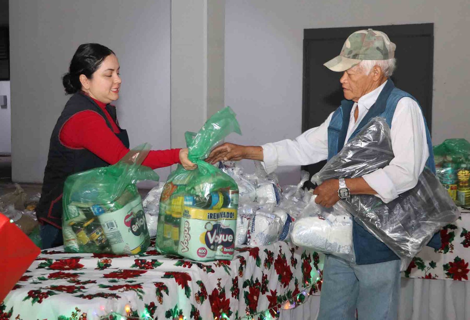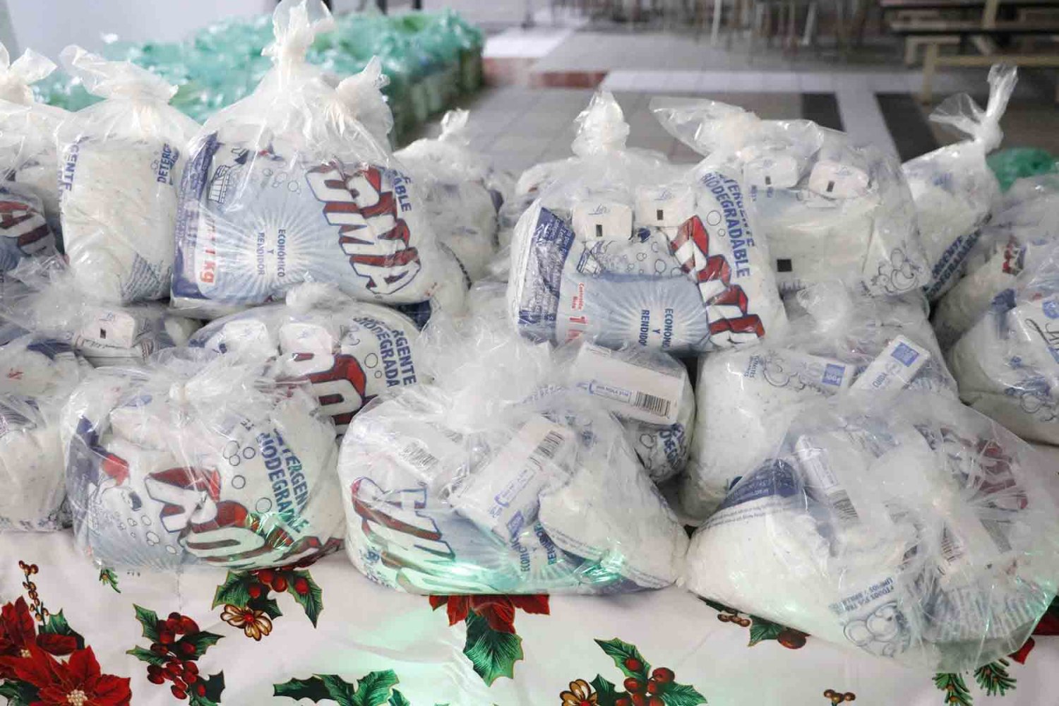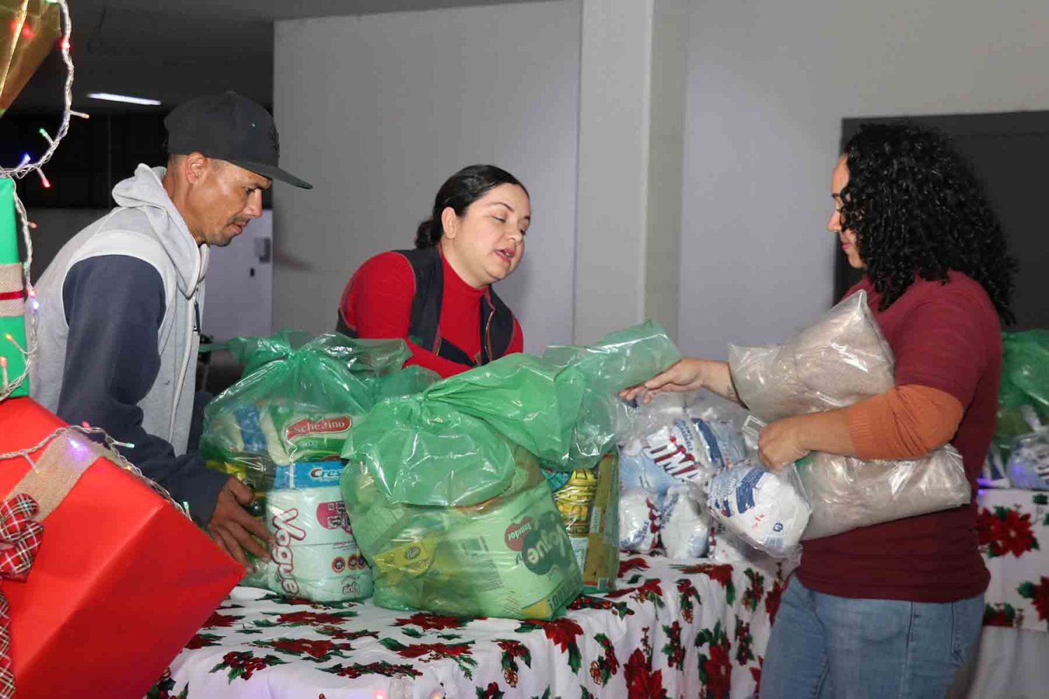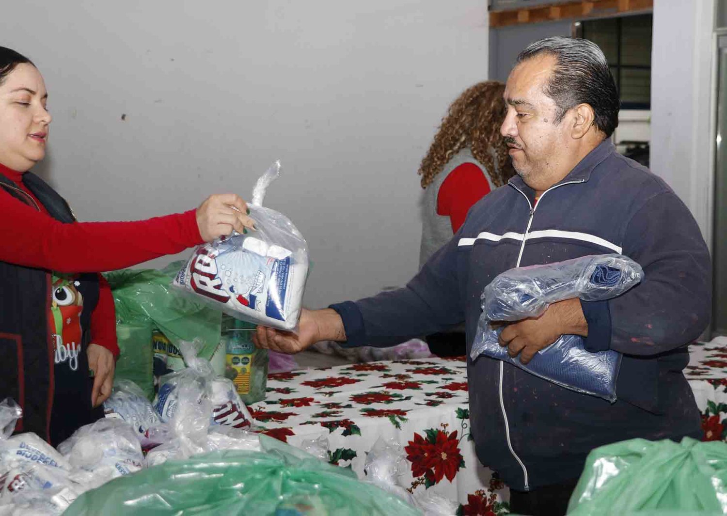 Este reparto navideño incluyó una despensa, artículos de la canasta básica, así como paquetes de jabón, cobijas o suéteres personalizados.