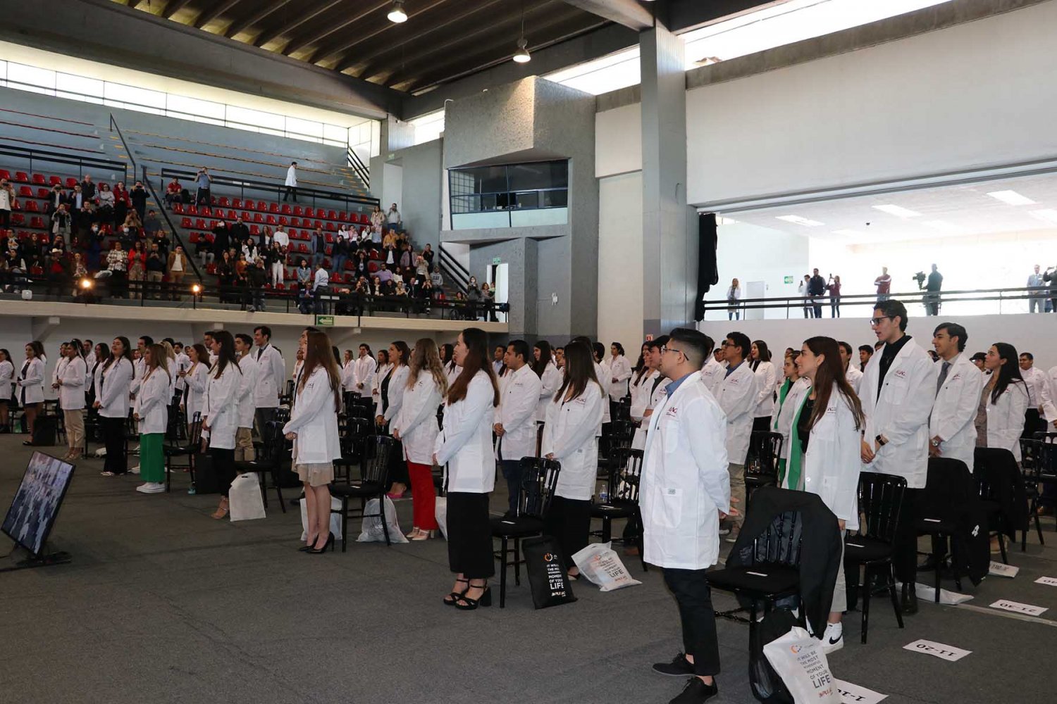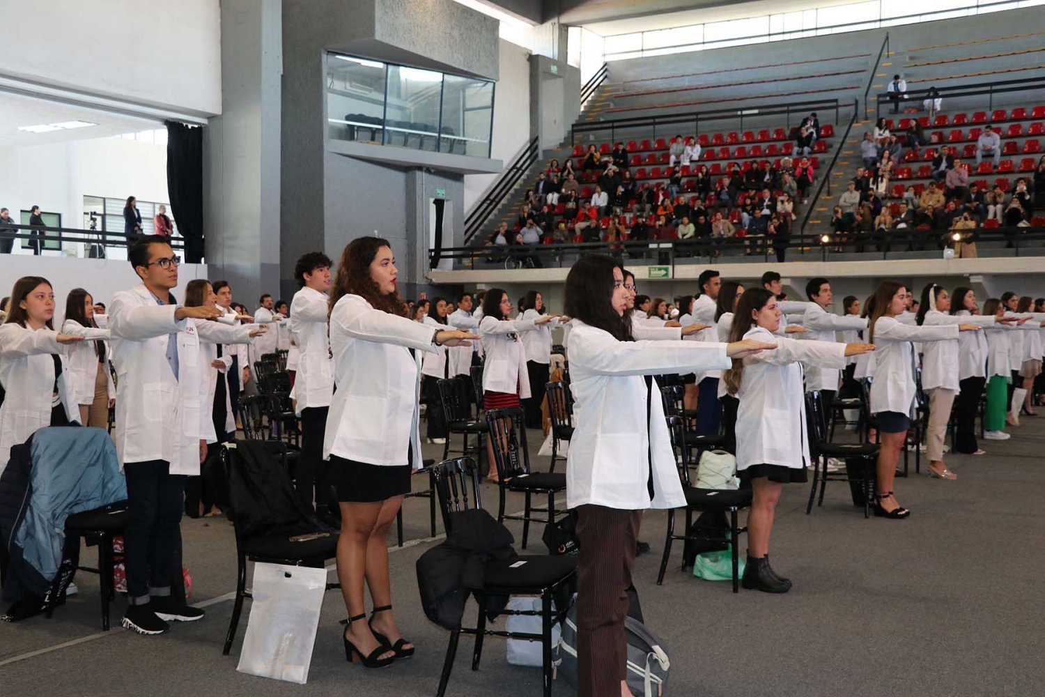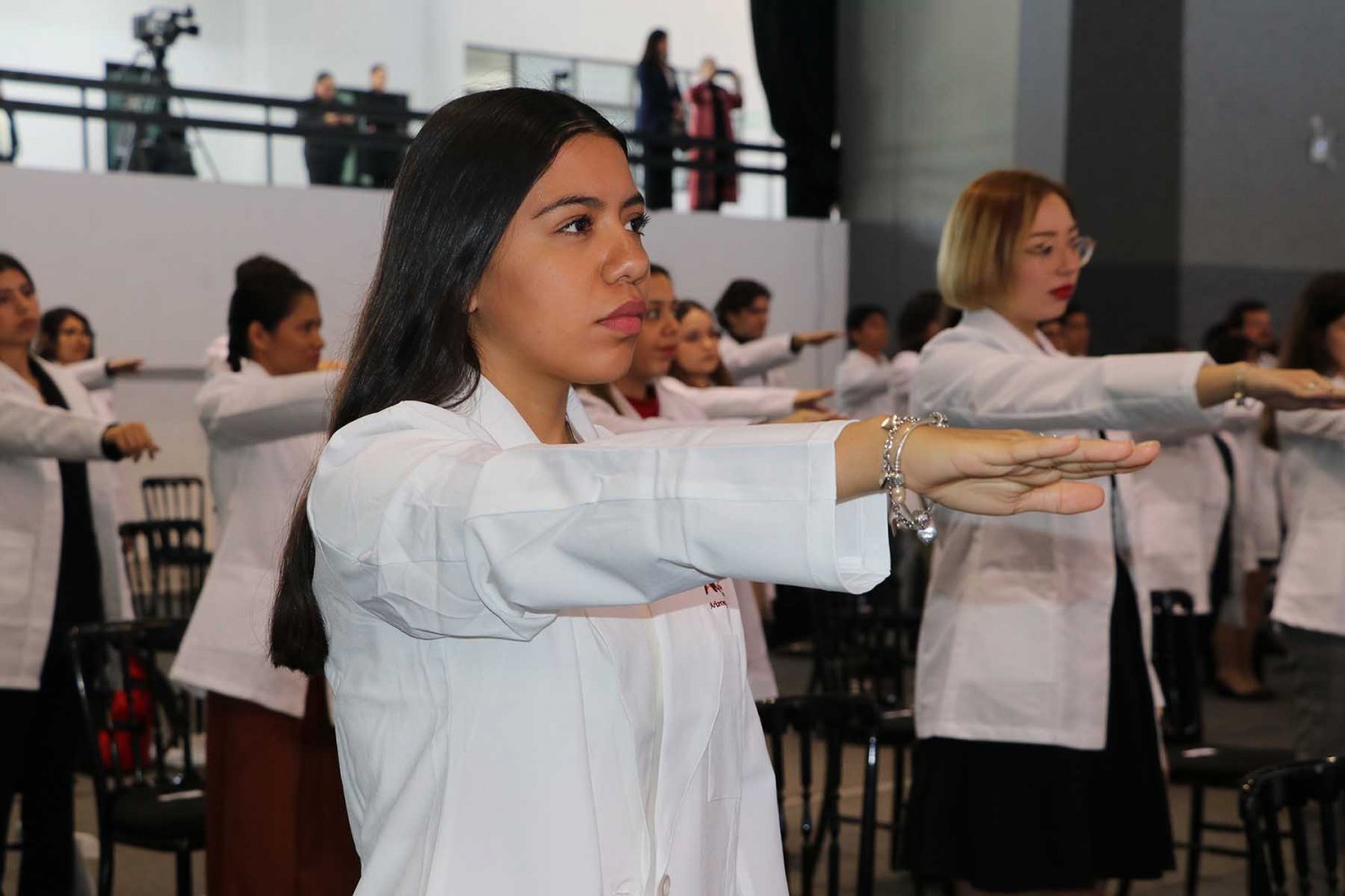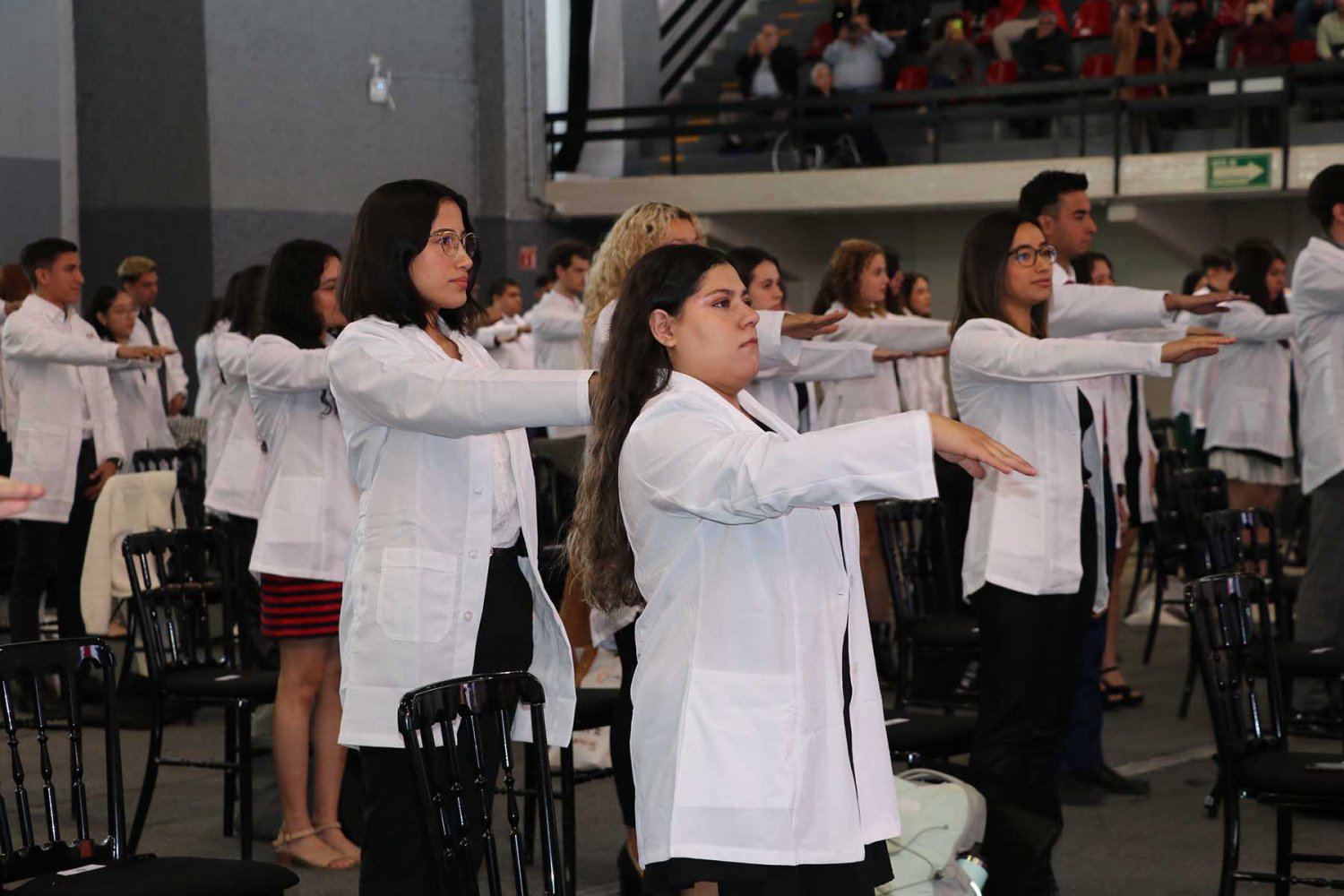 Luego, los nuevos alumnos recibieron su primera bata blanca, símbolo de la profesión médica, y tomaron protesta donde se comprometieron a llevar con bien su formación y la profesión médica.