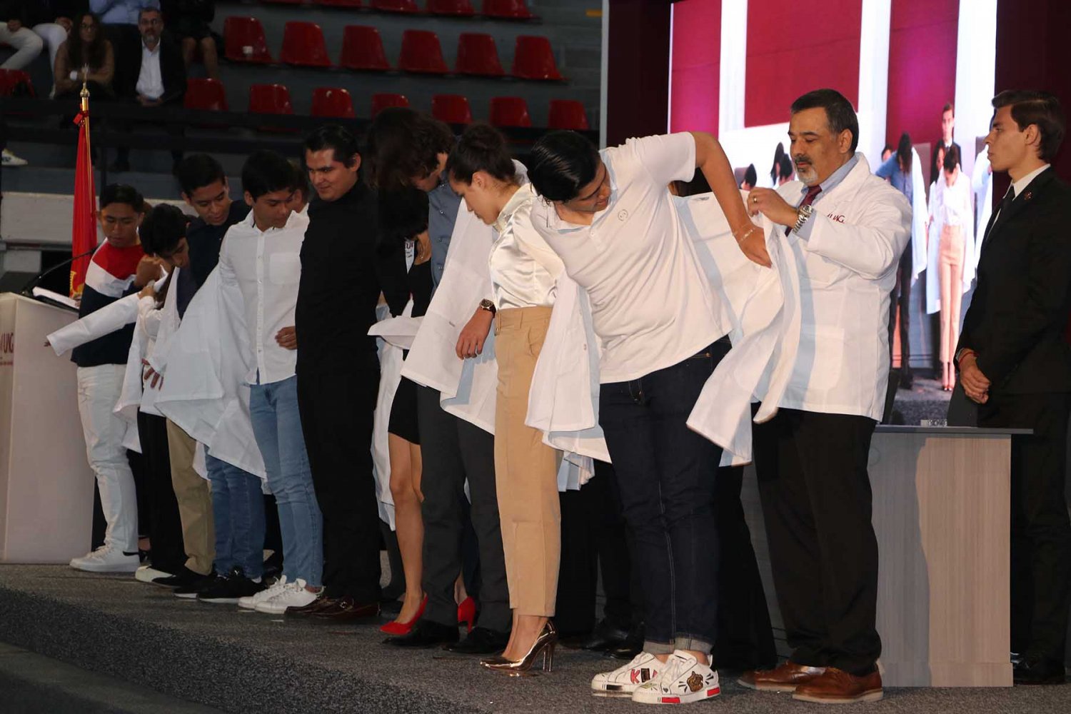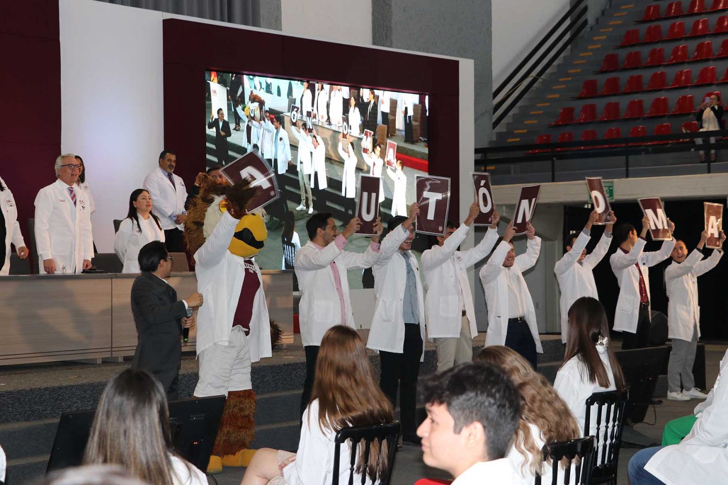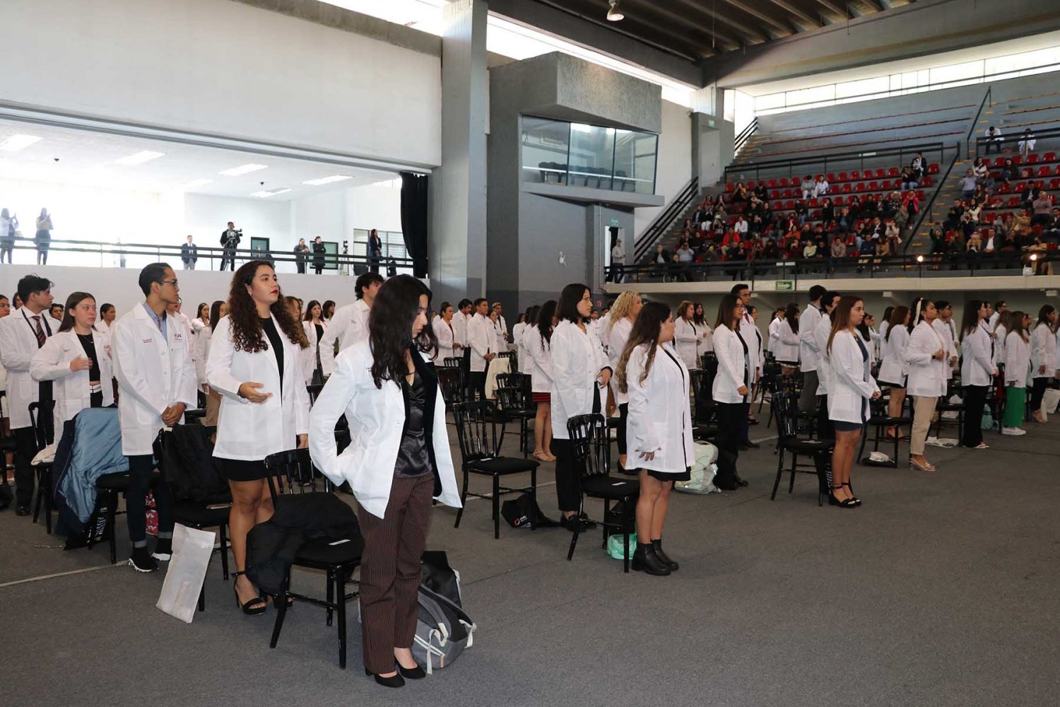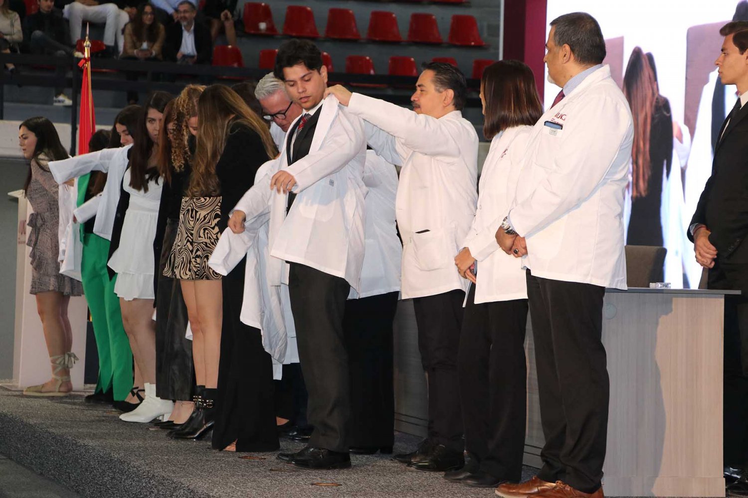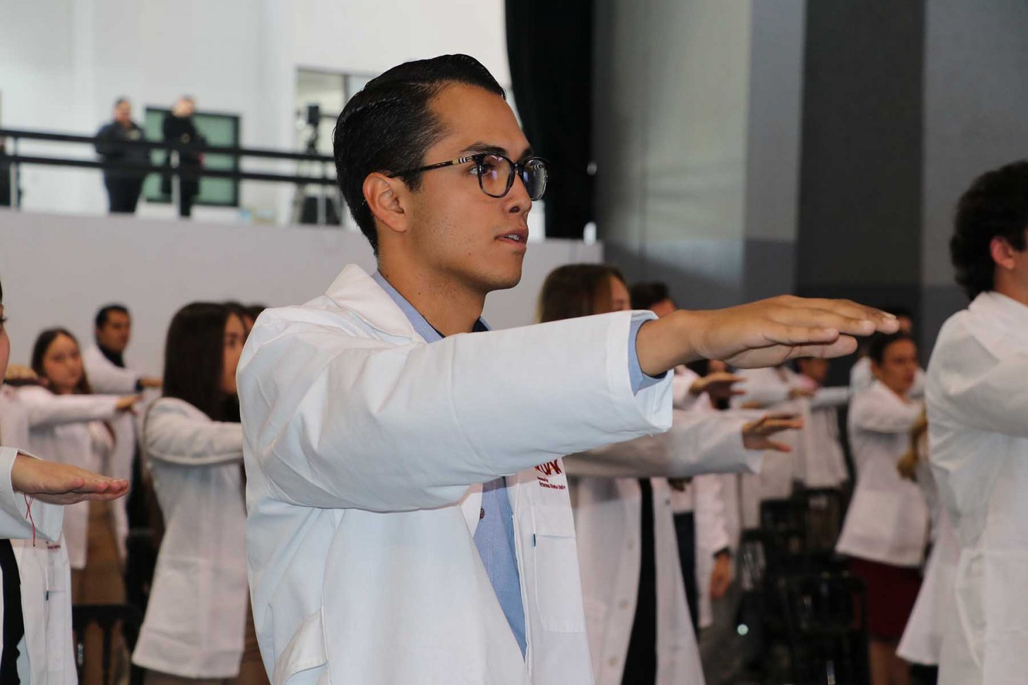 Luego, los nuevos alumnos recibieron su primera bata blanca, símbolo de la profesión médica, y tomaron protesta donde se comprometieron a llevar con bien su formación y la profesión médica.