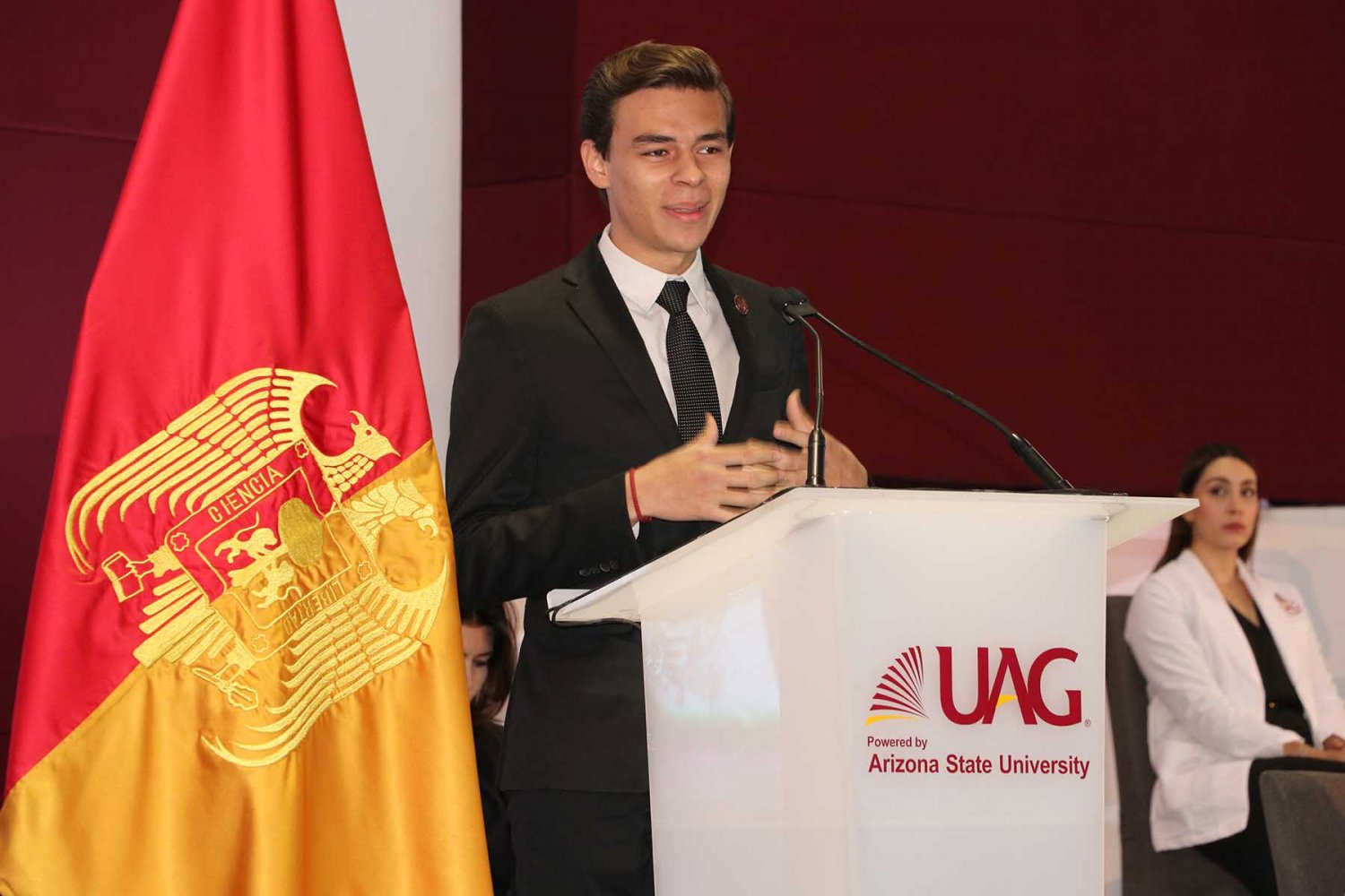 Durante el mensaje de bienvenida, del Lic. Antonio Leaño del Castillo, Vicerrector General de la UAG, aseguró el compromiso de la Autónoma para ofrecerles calidad educativa, misma que exige profesionalismo desde el primer día de clases.