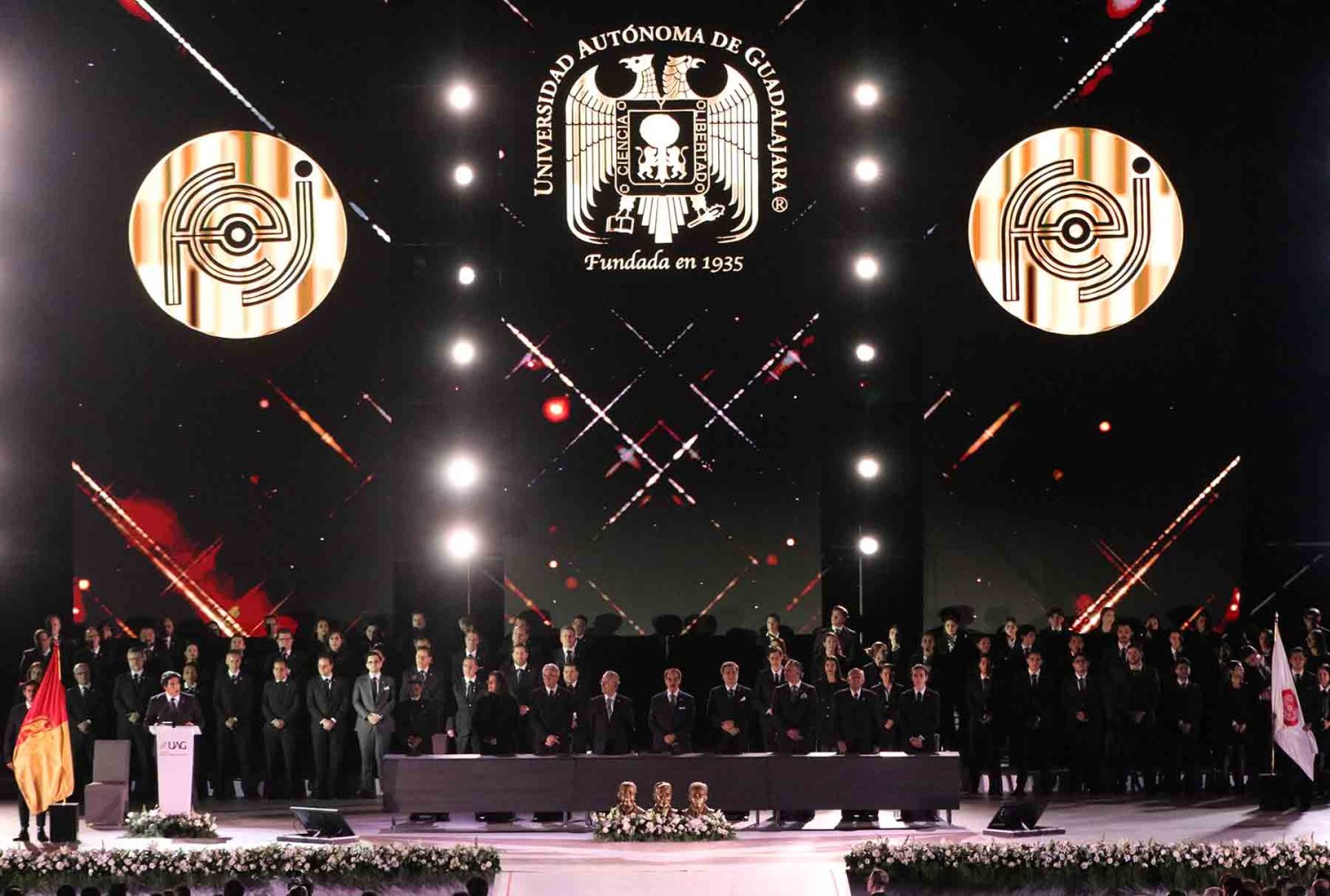 Al final de la ceremonia se ofreció un espectáculo multimedia, con uso de lásers y drones iluminados, que escribieron varias frases referentes a la UAG en el cielo tapatío, lo que sorprendió a los miles de asistentes.