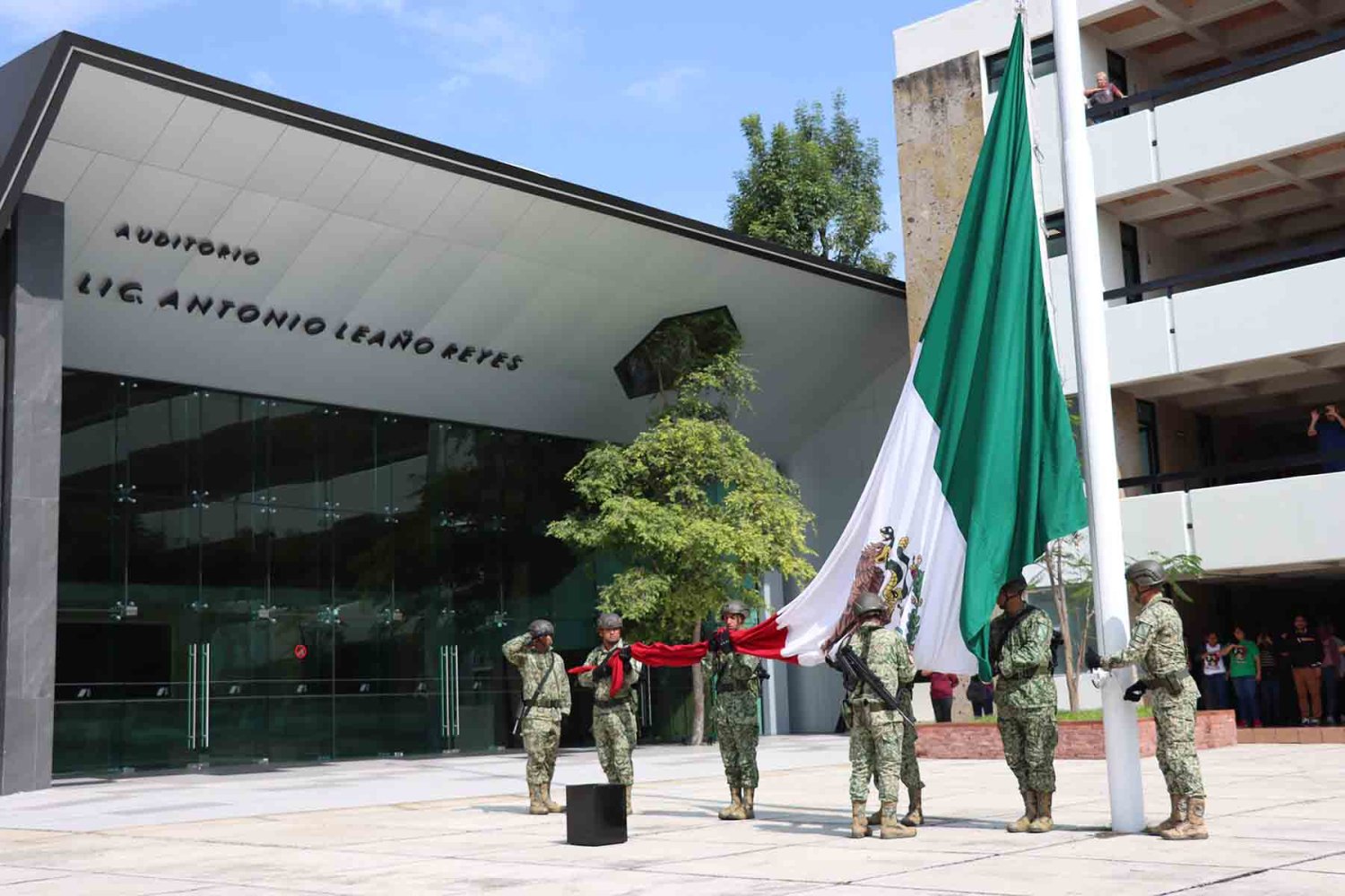 la comunidad universitaria de la uag se reunio en la plaza de las banderas para la celebracion
