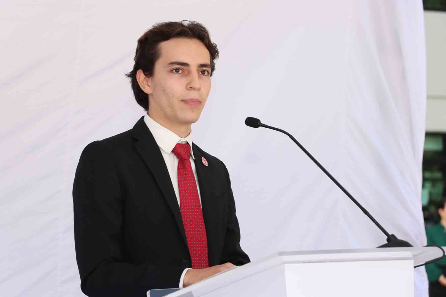 En su participación, el Ing. Carlos Esparza Rodríguez, Presidente de la Federación de Estudiantes de Jalisco (FEJ), resaltó que los mexicanos son una raza fuerte, que ha hecho frente a todas las adversidades que se han presentado en la historia.