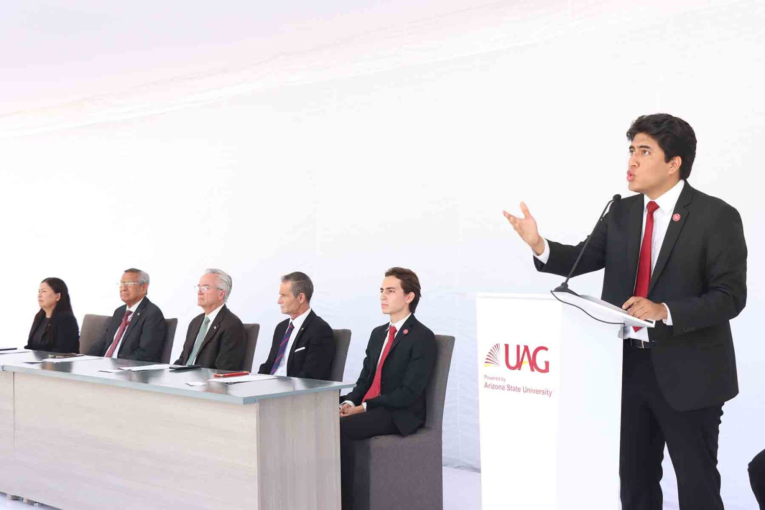 el dr alfonso petersen farah vicerrector academico y de ciencias de la salud dio un mensaje a nombre de las autoridades de la uag