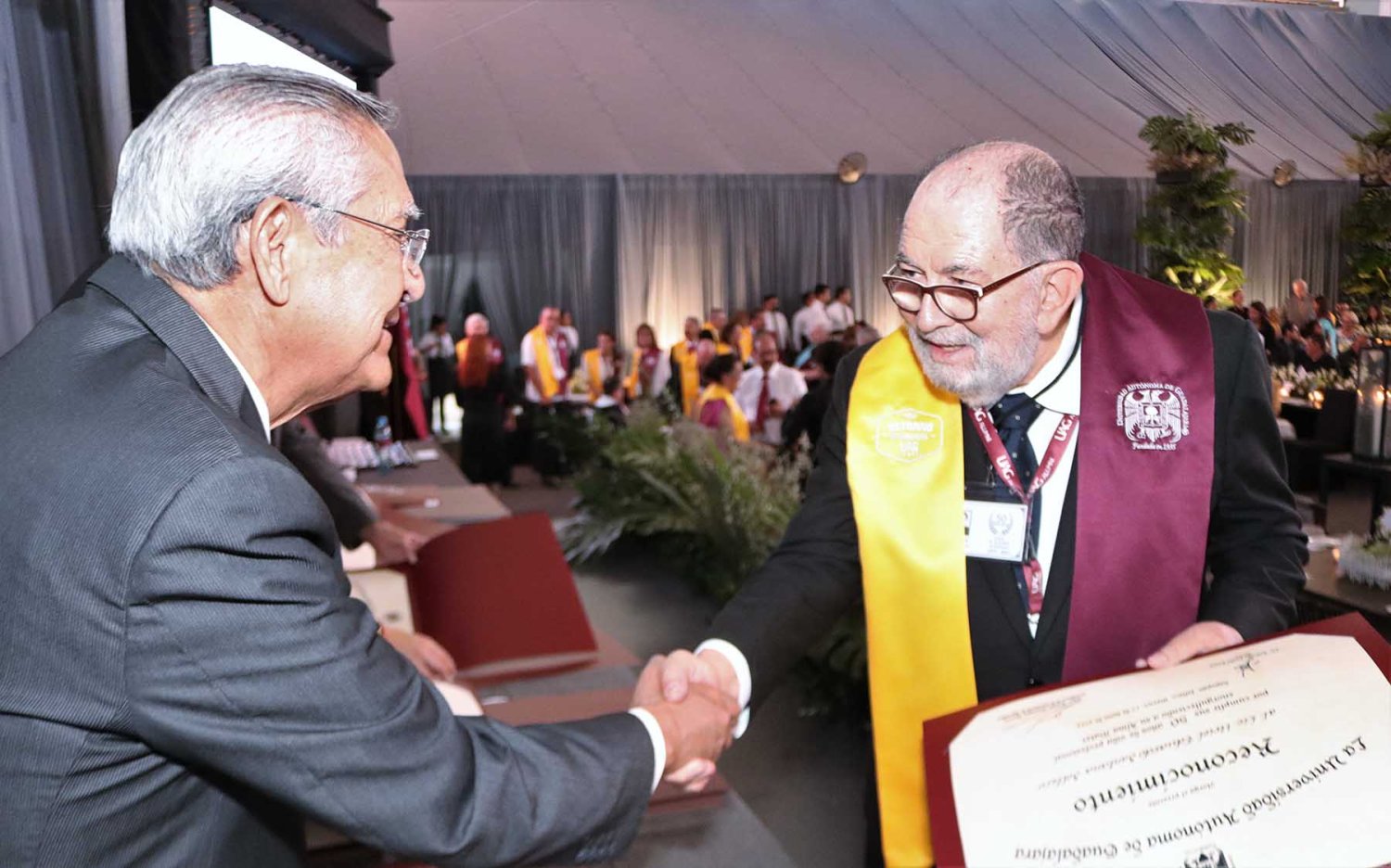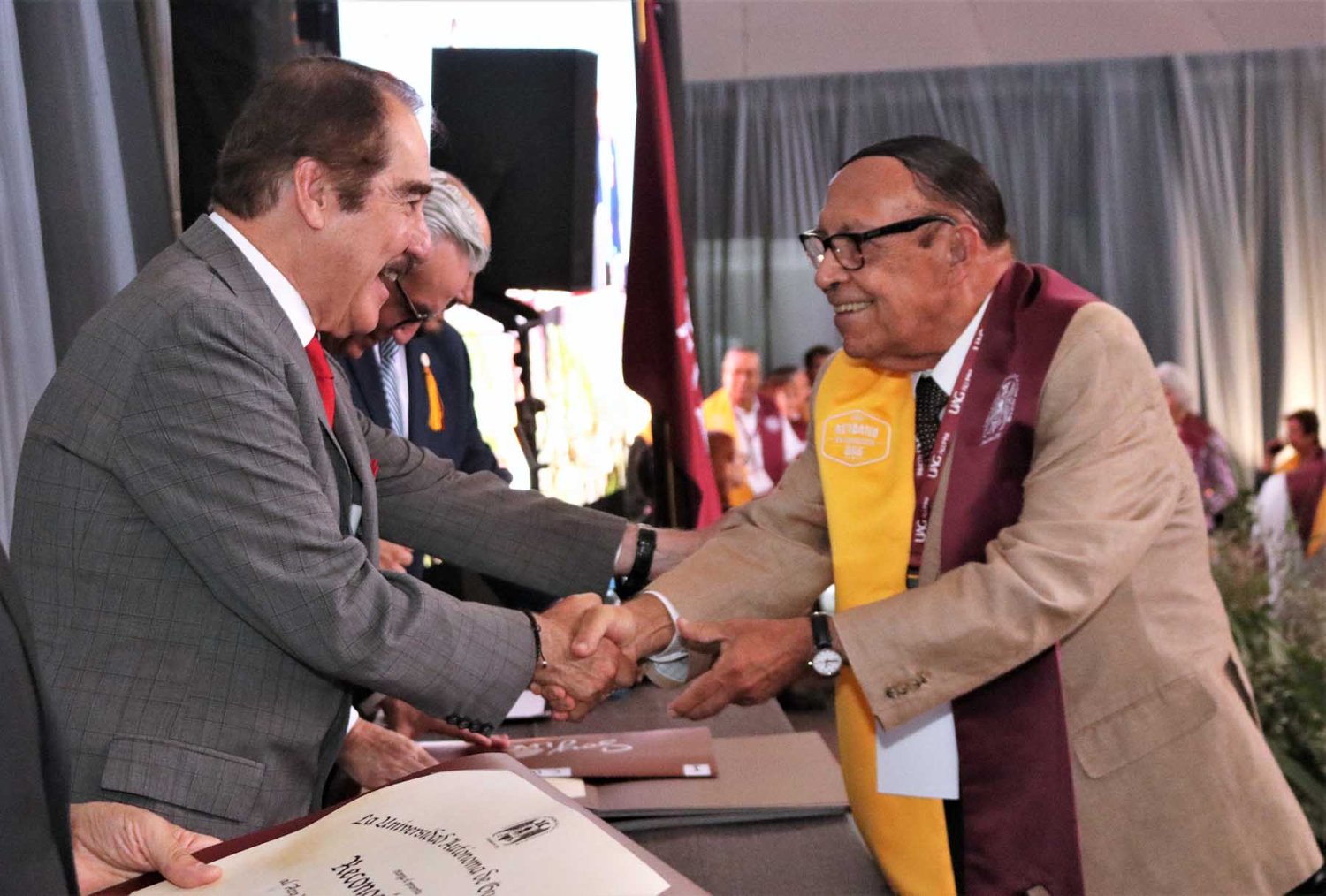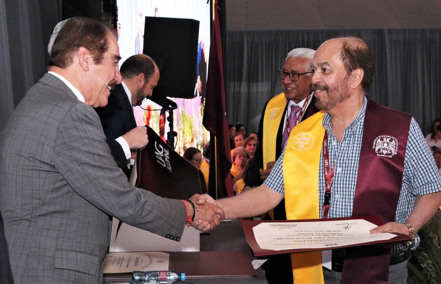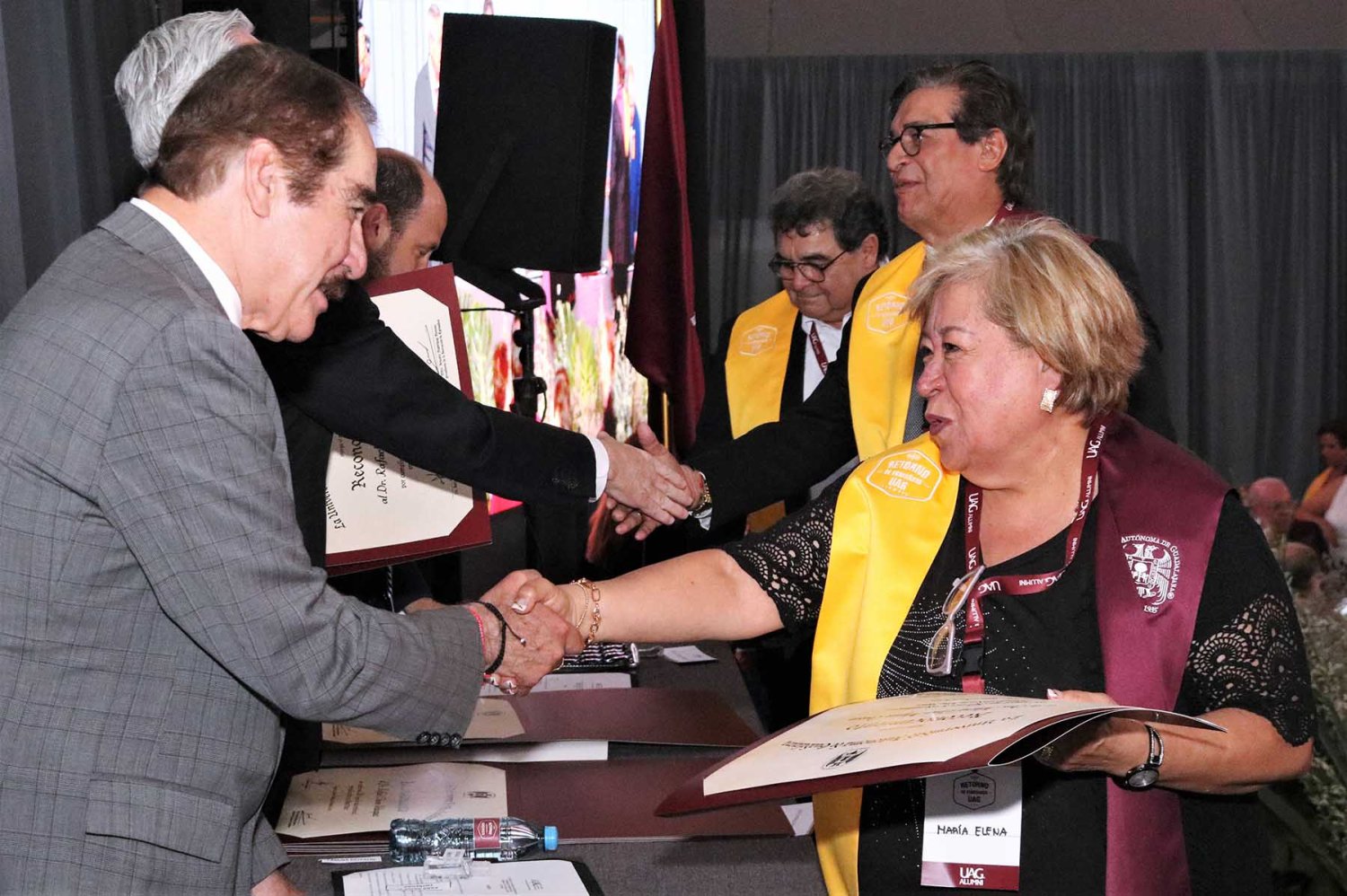 Luego de su intervención, se procedió con la entrega de reconocimientos a cada uno de los egresados asistentes, quienes cumplieron más de medio siglo como orgullosos de haber culminado sus estudios en la UAG.