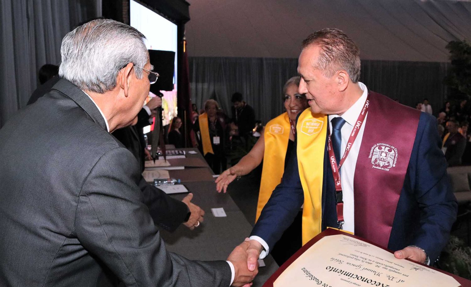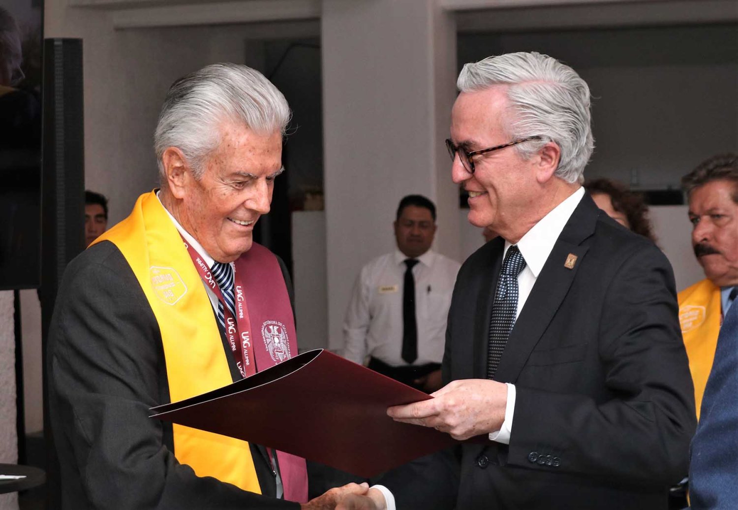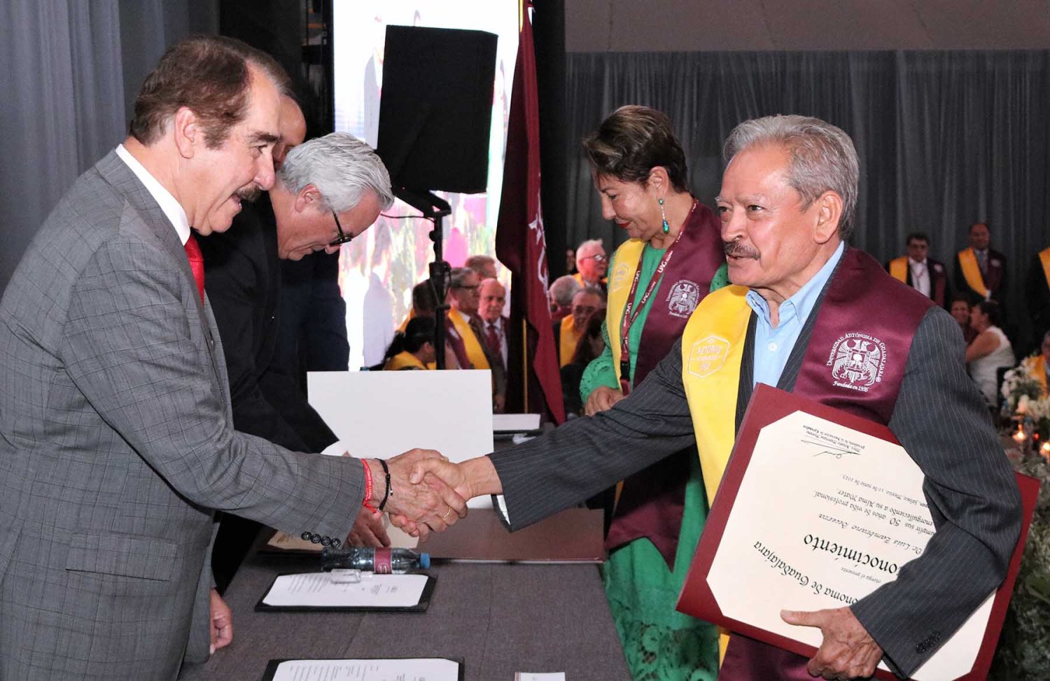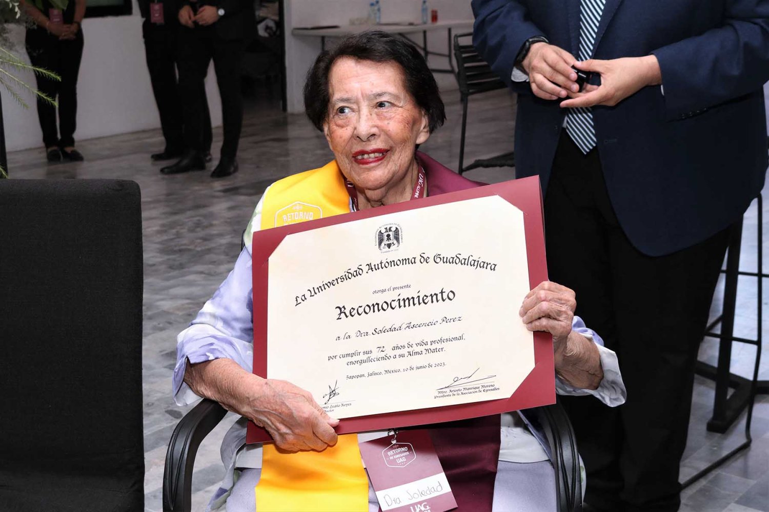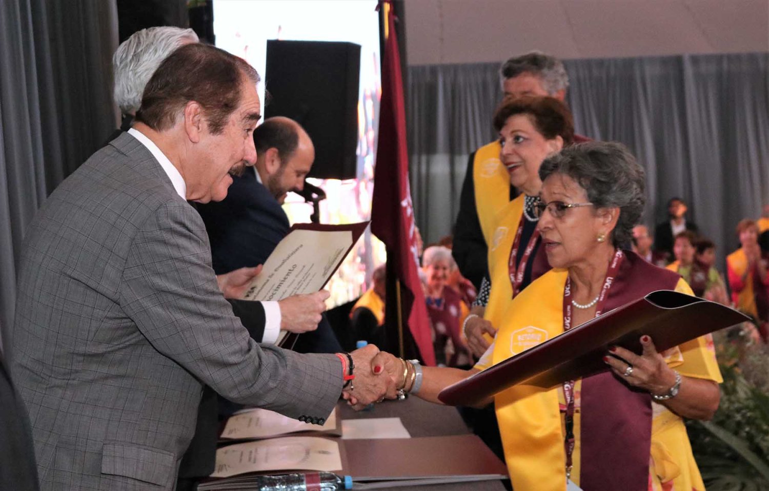 Luego de su intervención, se procedió con la entrega de reconocimientos a cada uno de los egresados asistentes, quienes cumplieron más de medio siglo como orgullosos de haber culminado sus estudios en la UAG.