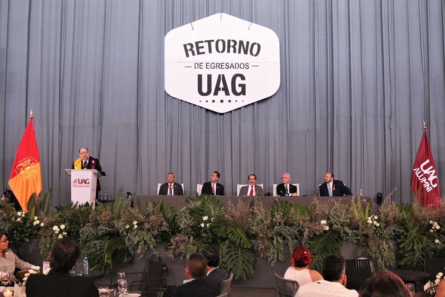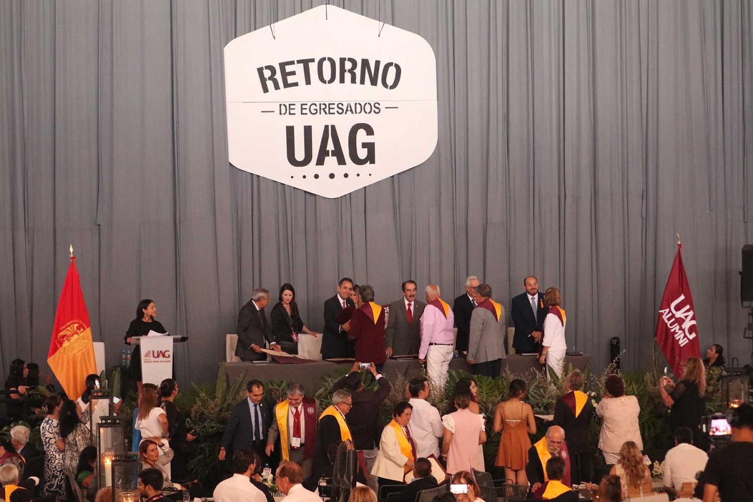 “Estamos unidos por un lazo indestructible que cargamos durante nuestra etapa universitaria, nuestra Alma Mater, la UAG, nos brindó una sólida educación y nos inculcó valores junto con nuestros padres. Aquí no encontramos solo conocimientos académicos, sino también un espíritu buscando la excelencia y una cultura de servicio a nuestra comunidad”, dijo el Lic. Miguel Ángel Domínguez Morales.