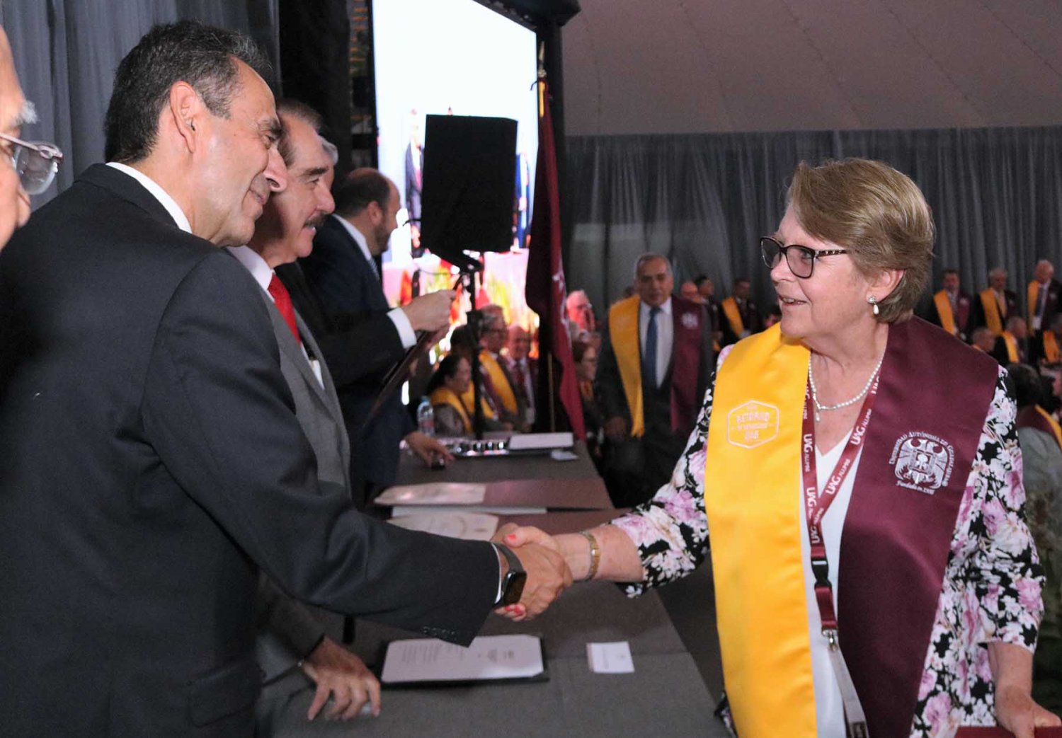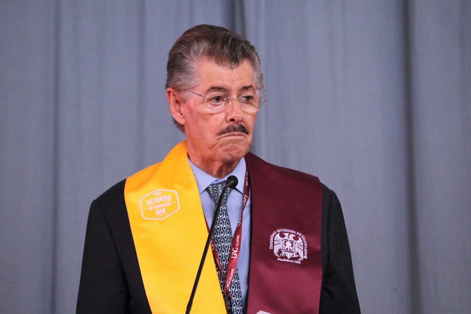 Posteriormente, el Lic. Uriel Eduardo Santana Soltero, quien cumplió 50 años de haber egresado, dio lectura al poema “Señora de mil Recuerdos”, mismo que leyó hace 33 años en la ceremonia del 50 aniversario de la UAG, lo que representó un momento emotivo entre los asistentes.