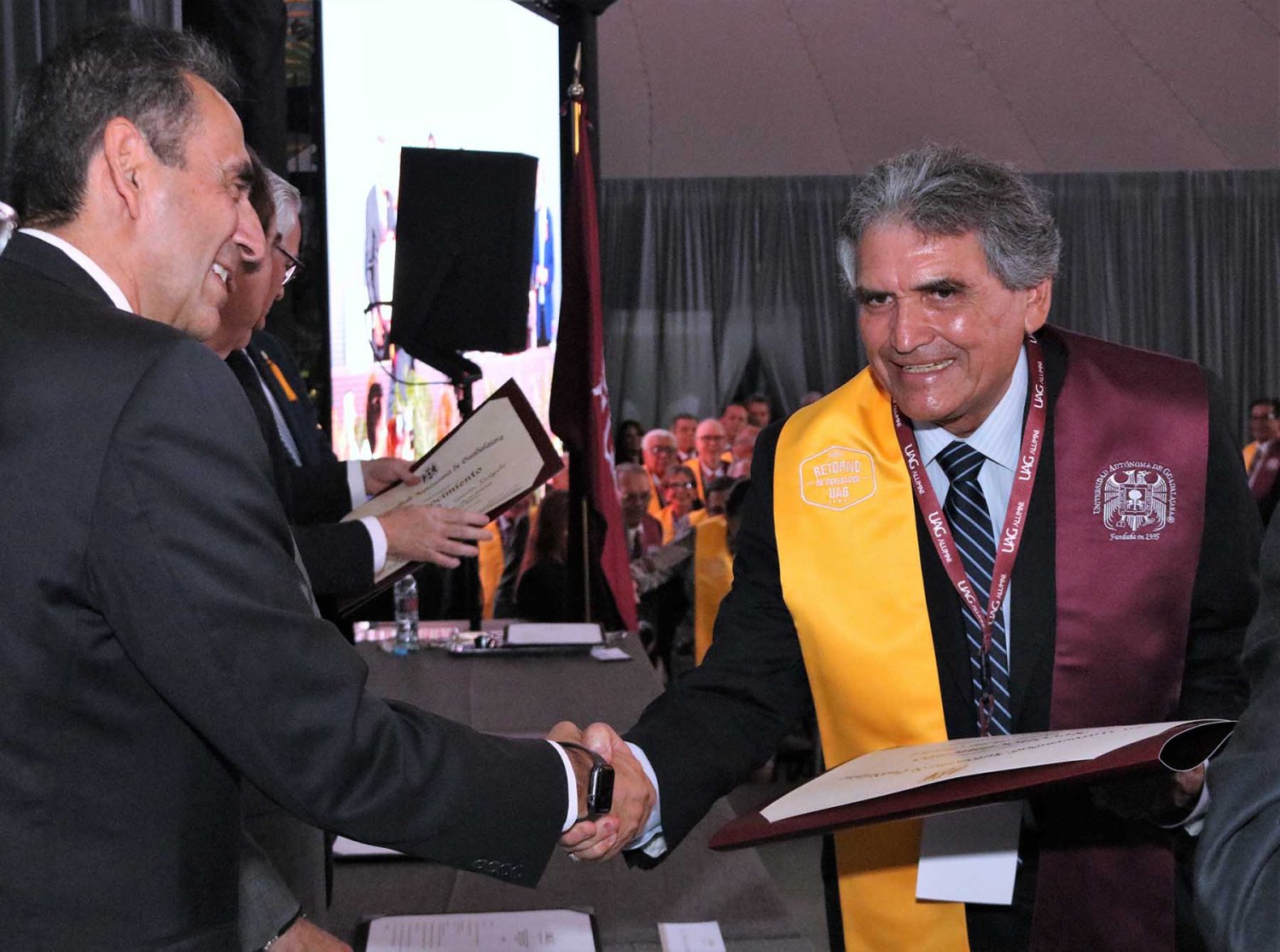 La ceremonia se realizó en el Gimnasio Universitario de la UAG y los egresados recibieron un reconocimiento y un fistol, que los identifica como orgullosos egresados de la Autónoma.