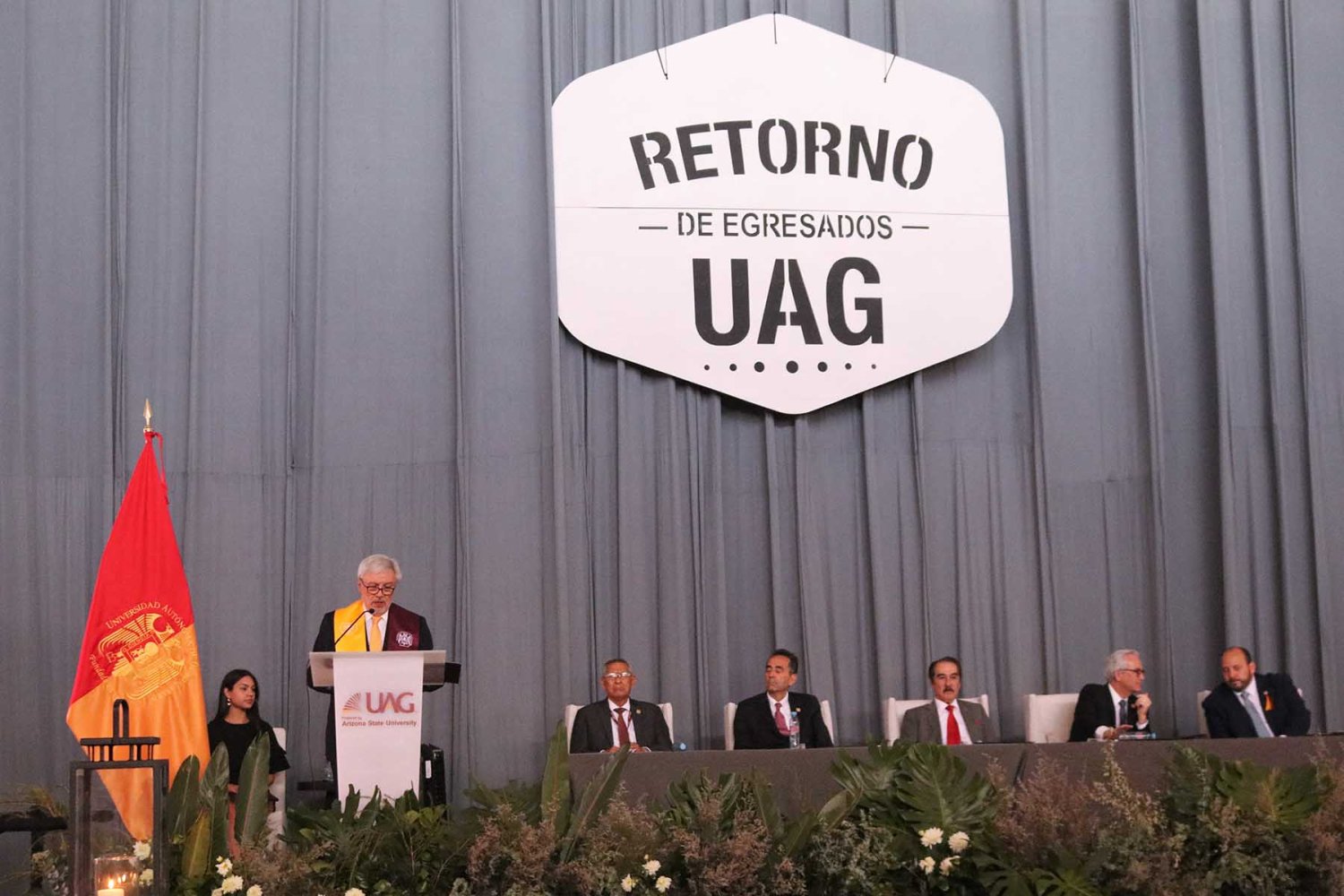 En la ceremonia, el Rector de la UAG, Lic. Antonio Leaño Reyes, dio la bienvenida a los egresados que hoy vuelven a su Alma Mater, la que es y será siempre su casa.