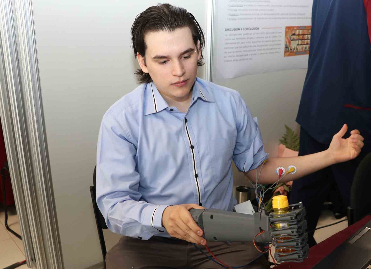 Entre el público se encontraba Beto, su mejor amigo de la infancia, usando la prótesis que Jorge había diseñado especialmente para él. No solo eso: Beto realizó una impresionante demostración en vivo, mostrando cómo esta herramienta tecnológica había transformado aspectos de su vida cotidiana.