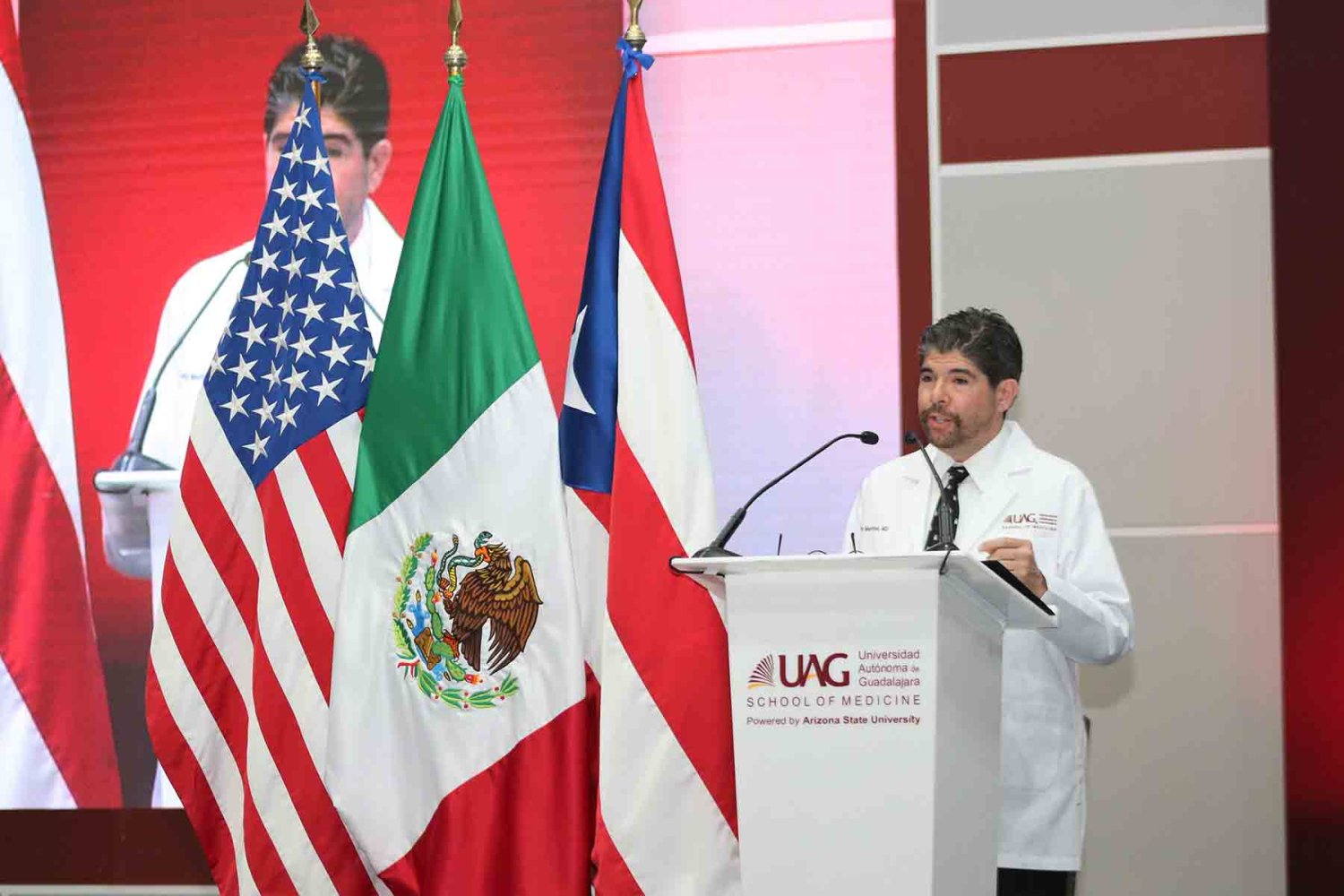 Después de este mensaje, el Dr. Kashif Ahmad, Decano del Programa Internacional de Medicina, expresó un mensaje a nombre de las autoridades universitarias de la UAG.