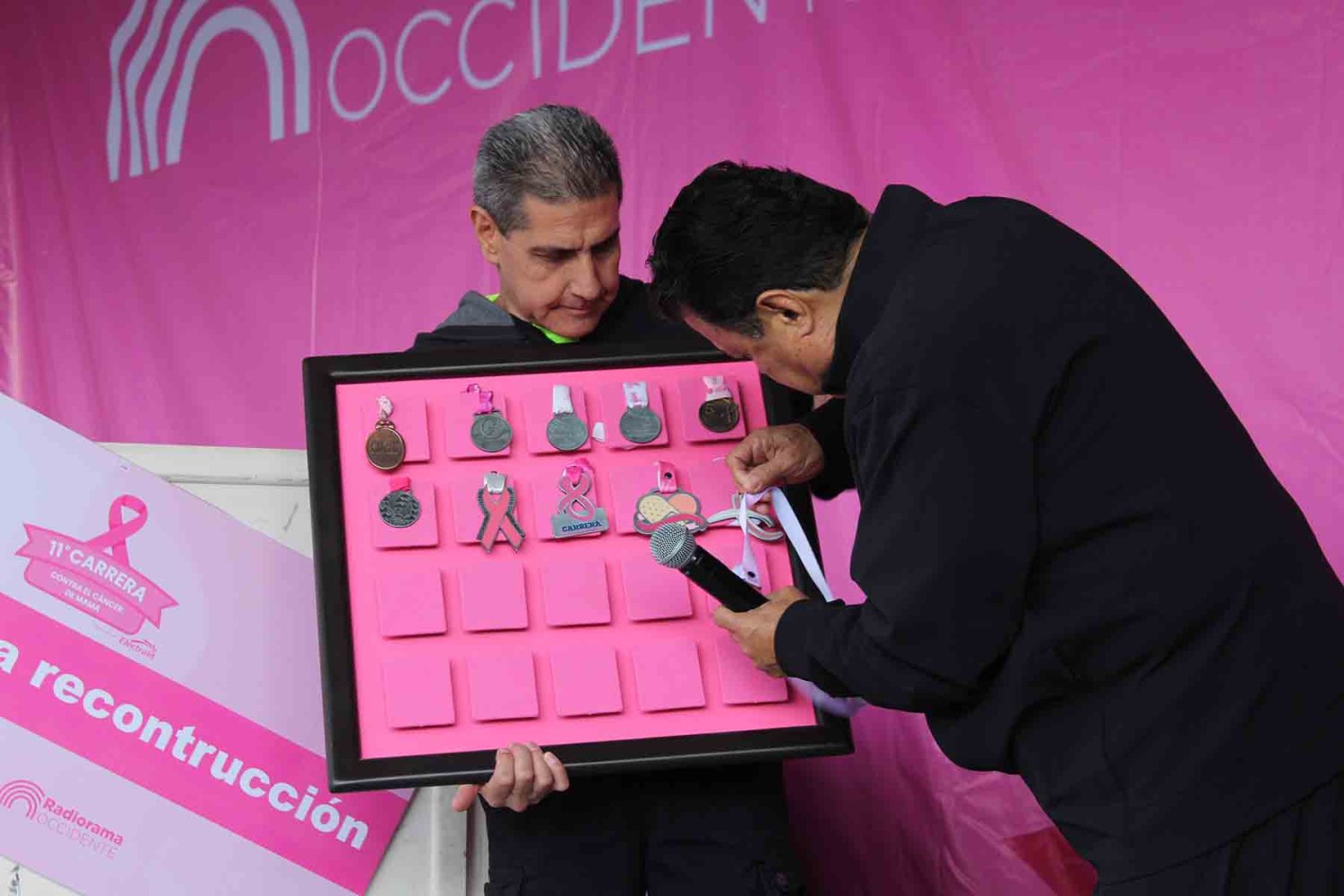 Posteriormente, el Lic. Pereda colocó la medalla conmemorativa de esta carrera en un medallero en la que se resguardan las medallas de todas las ediciones.