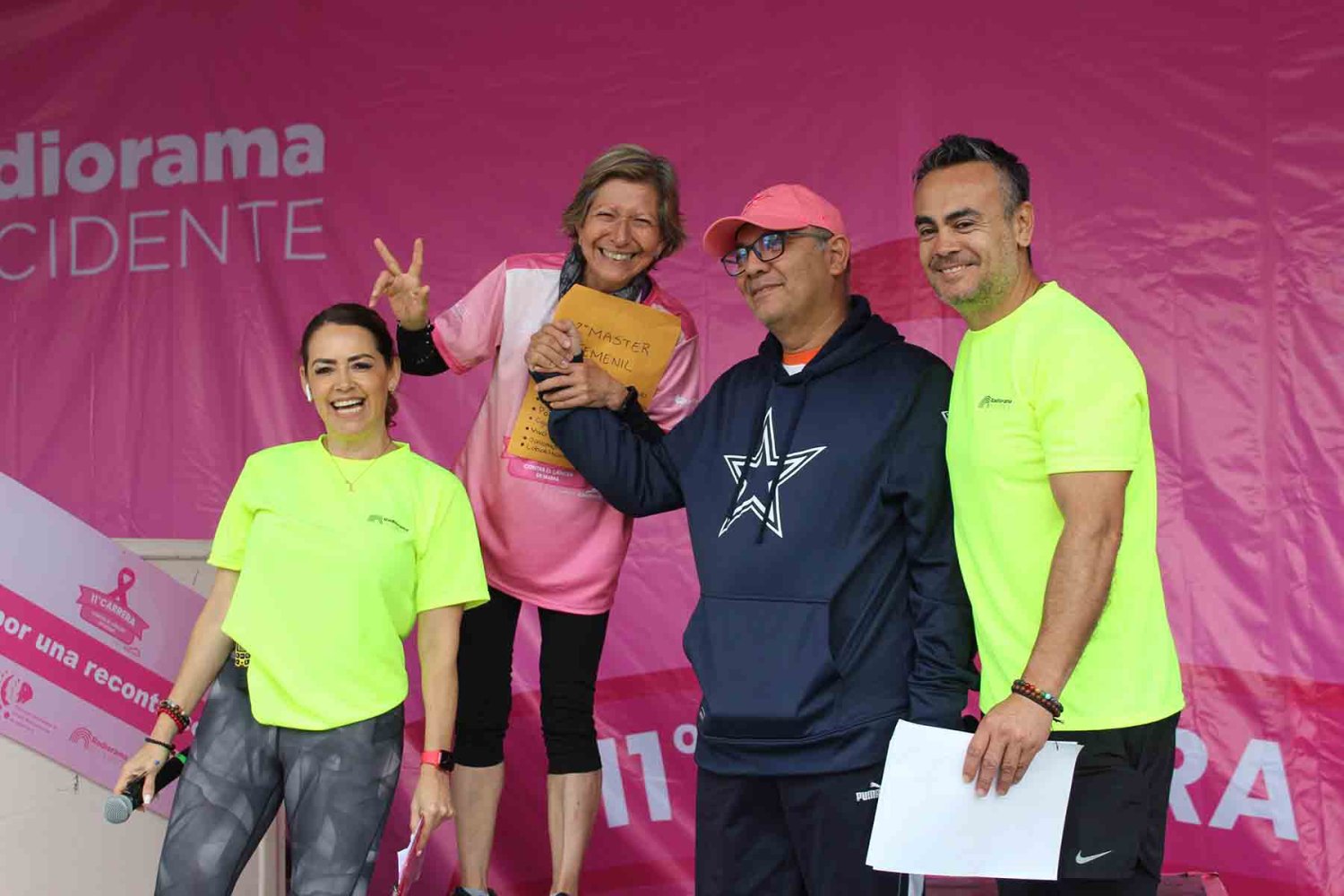 “Quiero agradecer la participación de todas las personas que, año con año, en estos 11 años de la Carrera Contra el Cáncer de Mama; no hay que olvidar el tema que es que la mujer se cuide, que la mujer se osculte”, afirmó.