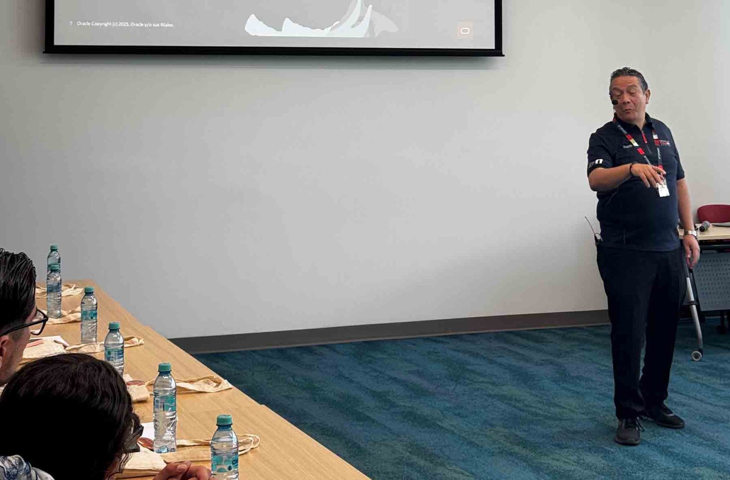 La experiencia inició con una bienvenida por parte de Oswaldo Rojas, Developer Outreach Sr. Manager de Oracle, quien presentó la filosofía de la compañía y cómo esta se refleja en sus espacios y dinámicas de trabajo.