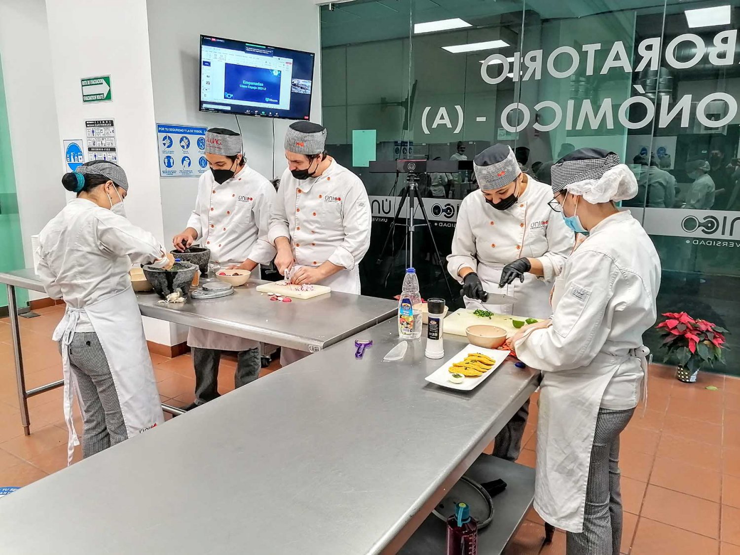 Estudiantes, de diversos cuatrimestres, de la Lic. de Negocios Gastronómicos de la Universidad Autónoma de Guadalajara (UAG) participaron con sus pares de la Fundación Universitaria Cafam de Bogotá, Colombia, en la Master Class “Empanadas Colombianas”.