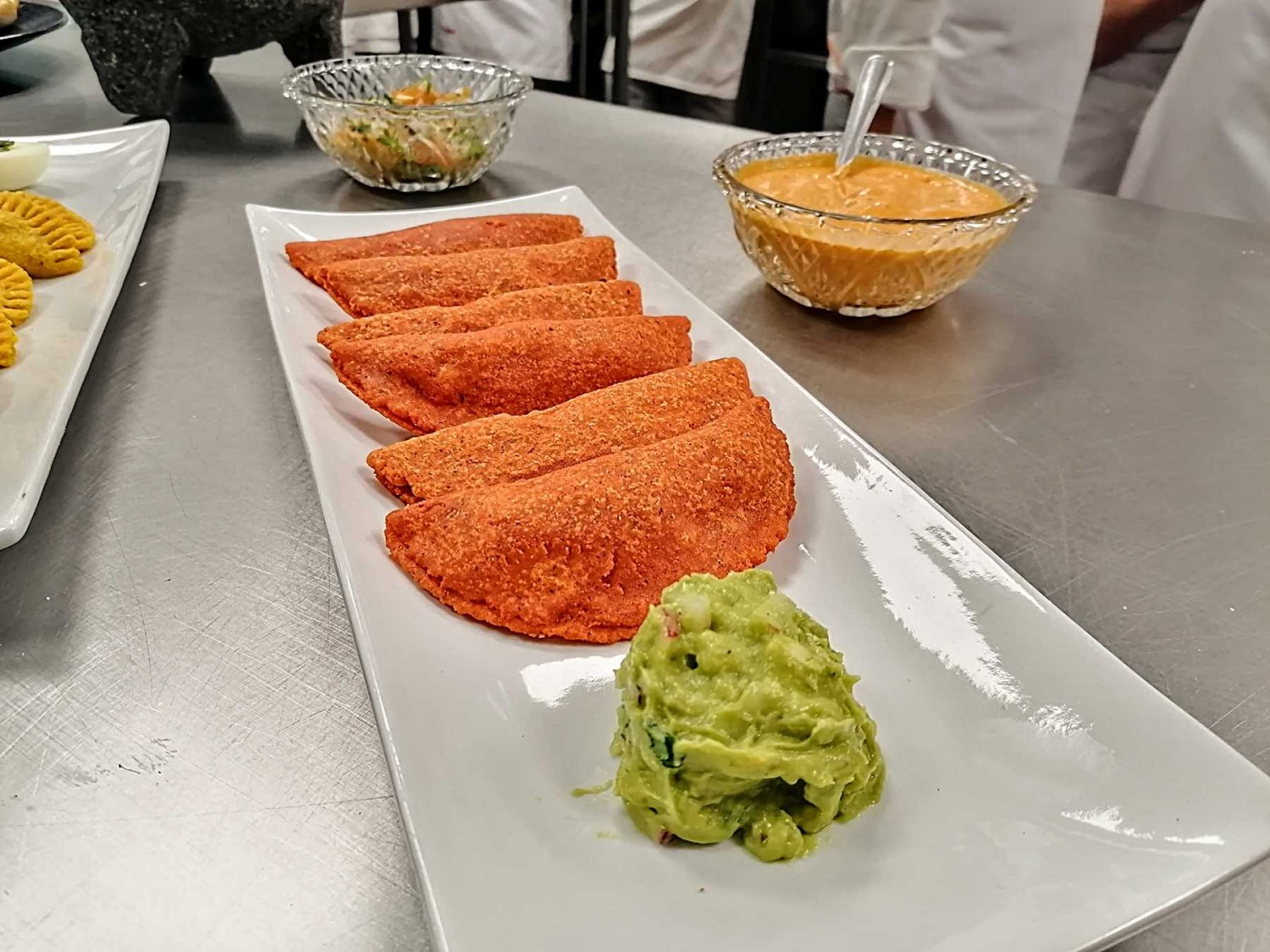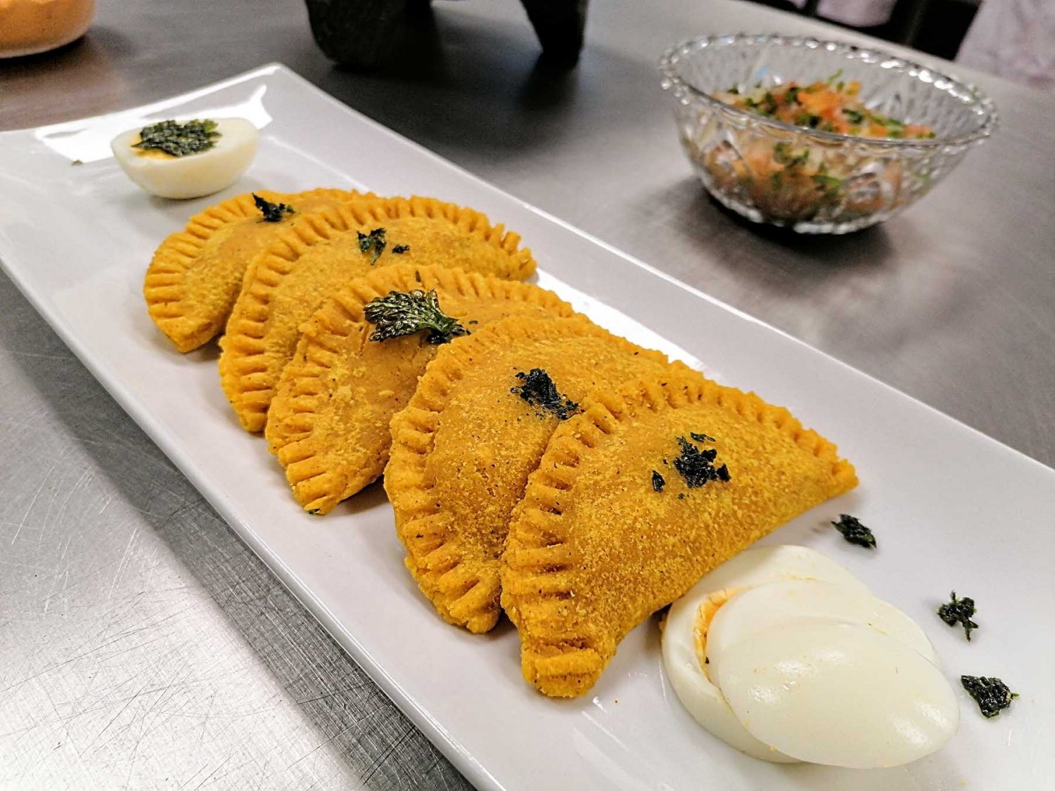 Al terminar de cocinar sus empanadas, los estudiantes ambas instituciones presentaron sus platillos y hablaron de los mismos. Las empanadas fueron creadas con diversos colores, de maíz, y rellenos como camarón, arroz, yuca, pescado, membrillo y otros productos.
