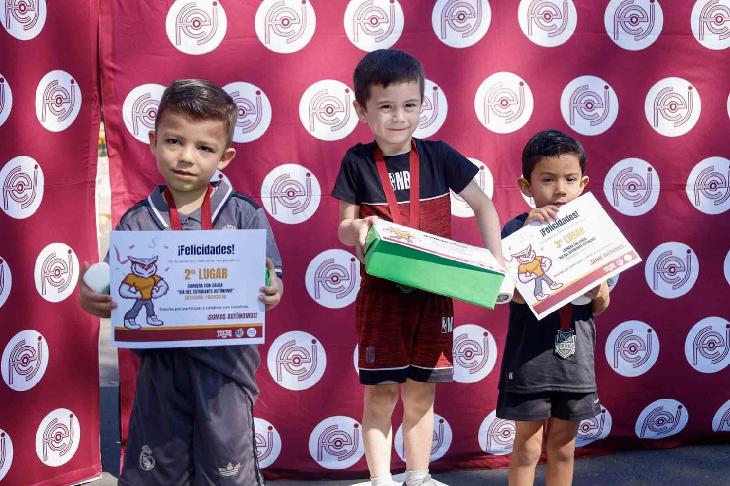 La carrera de 100 metros fue para niños de preescolar, la de 300 metros para primeria menor y la de 600 metros para primaria mayor.