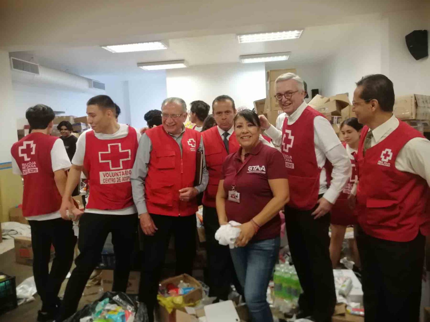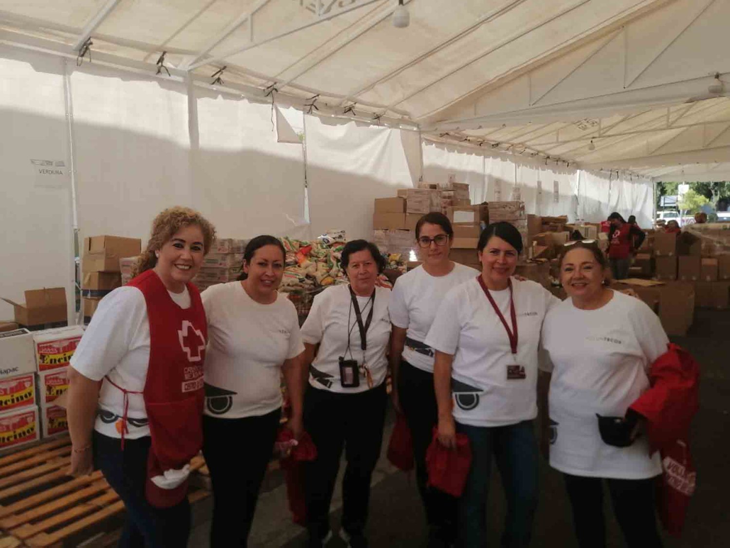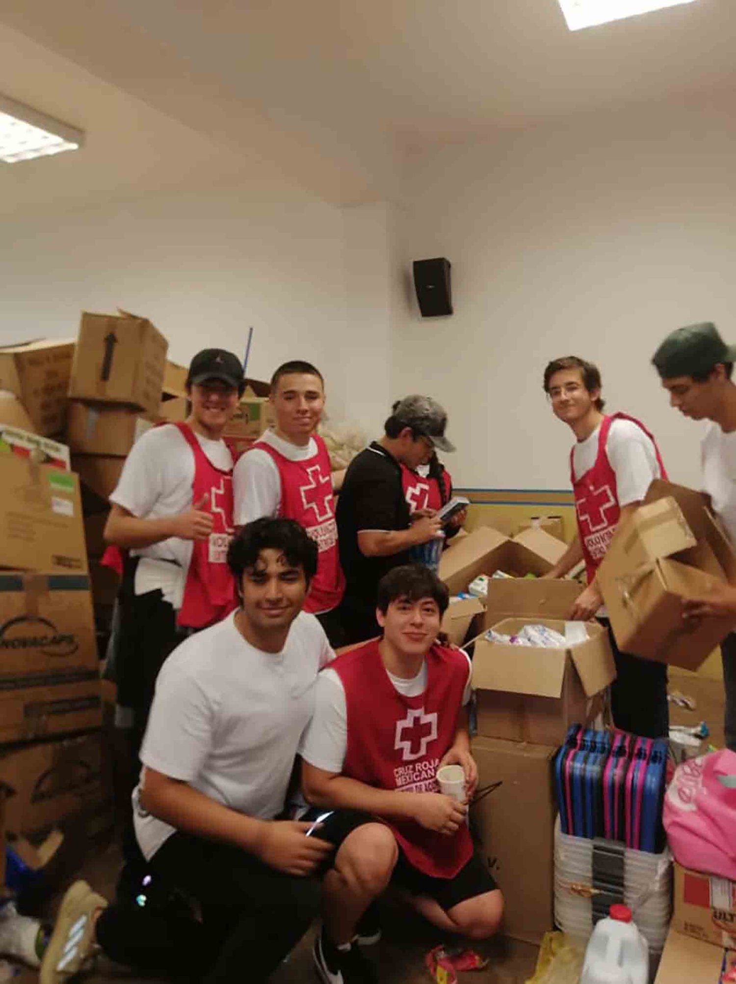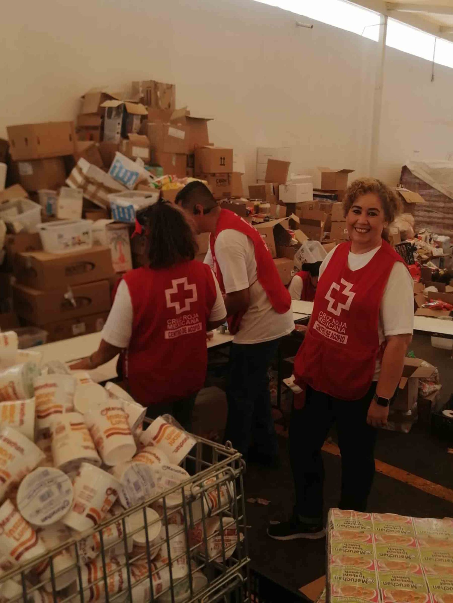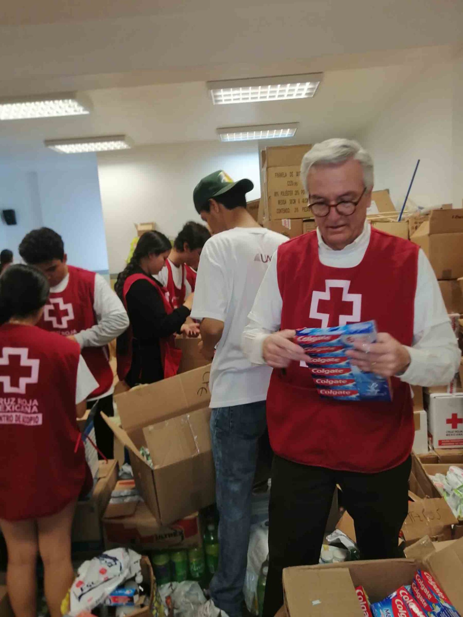 Posteriormente, la Dirección de Recursos Humanos organizó a un grupo de colaboradores, jubilados y alumnos, quienes ayudaron a empaquetar 640 despensas en las instalaciones de la Cruz Roja que serán entregadas a los afectados por el huracán.