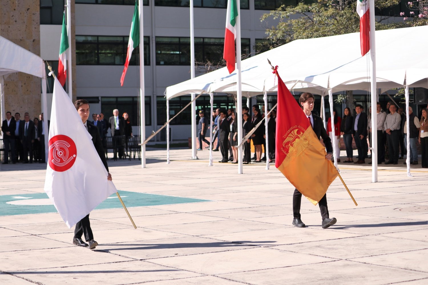La ceremonia, a la que asistieron alumnos y colaboradores, se realizó en la Plaza de las Banderas y también se entonaron los himnos de la UAG y la Federación de Estudiantes de Jalisco (FEJ).