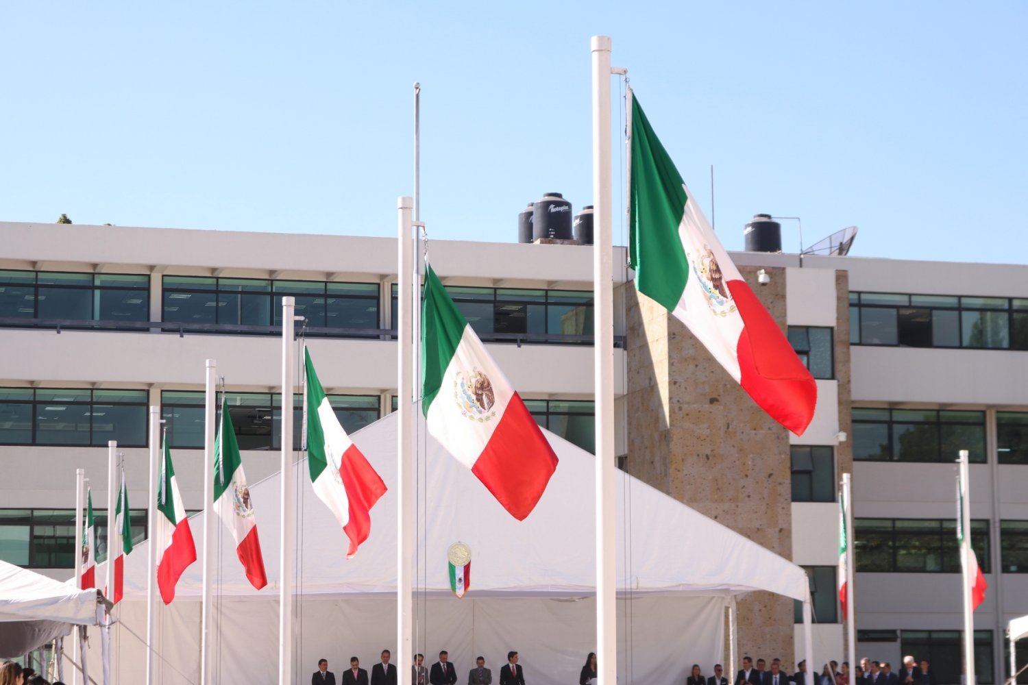 “Este hermoso lienzo tricolor es nuestro; es la bandera que nos cubre, nos dignifica e identifica como miembros de una nación: nuestro México. La bandera es la representación del suelo en el que nacimos, nuestros orígenes, sobre todo, el legado para las generaciones venideras. Es por ello, que nos llena de orgullo honrarla y demostrar con este acto el amor que cada uno de nosotros tenemos a la patria”, dijo.