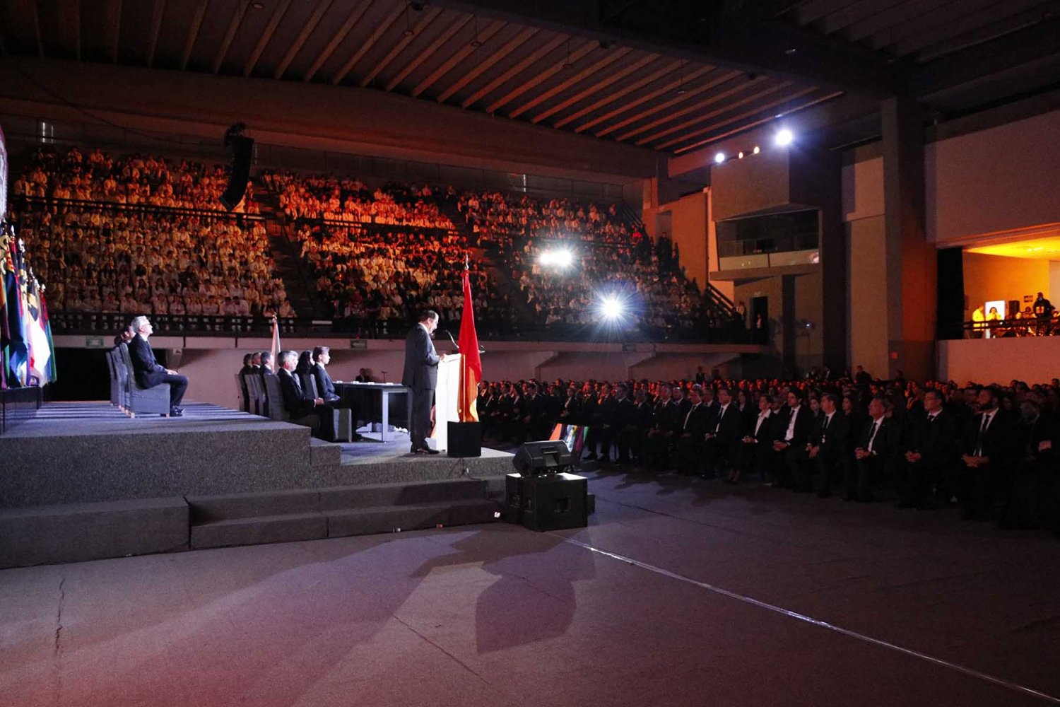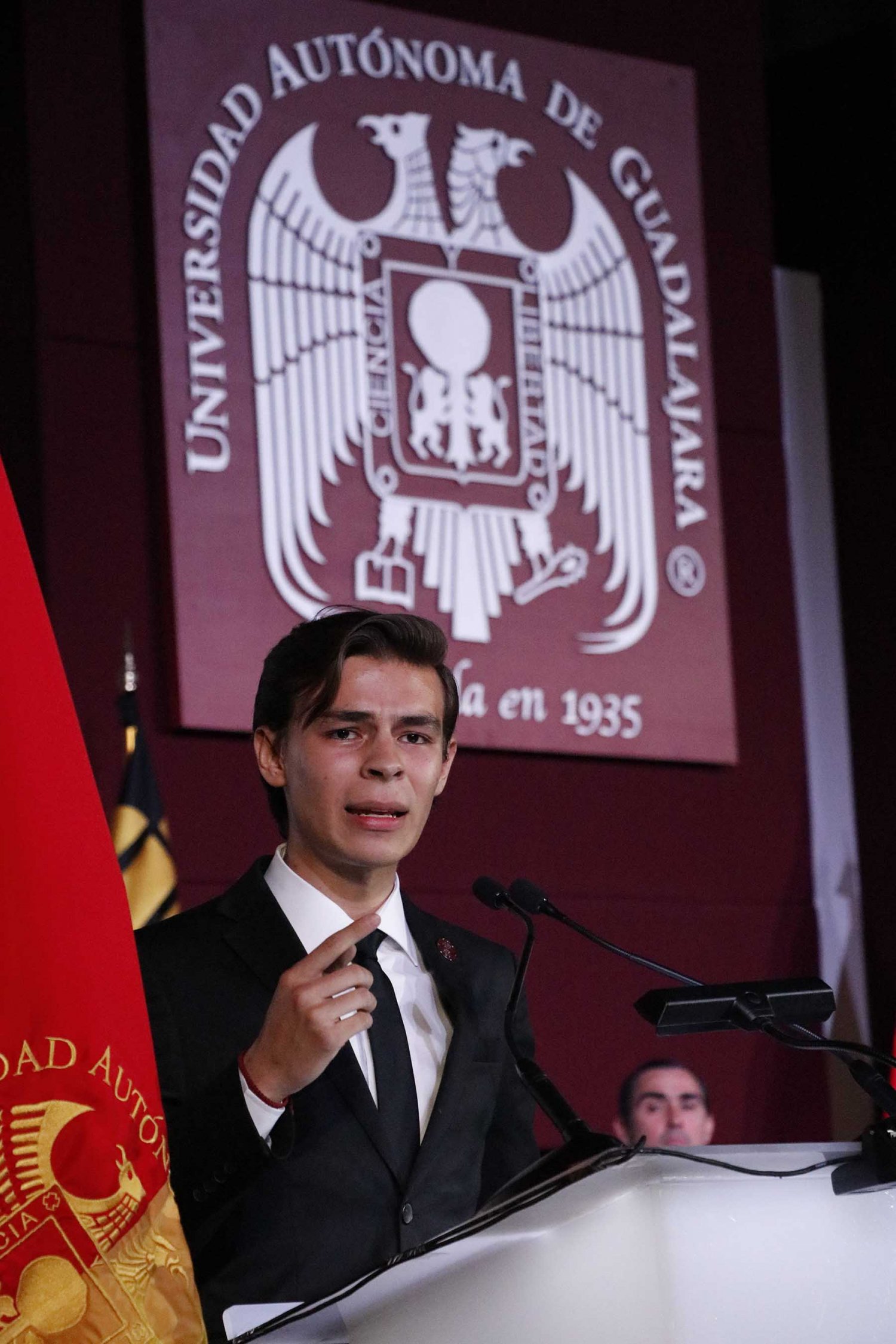 La conmemoración se llevó a cabo en el Gimnasio Universitario ante cientos de estudiantes, profesores y colaboradores, y fue presidida por el Rector, Lic. Antonio Leaño Reyes, autoridades universitarias, claustro, Comité Ejecutivo de la Federación de Estudiantes de Jalisco (FEJ) y, como invitado especial, el Ing. René Calderón Bujdud, egresado distinguido de la UAG y director de la prestigiada empresa Recal.