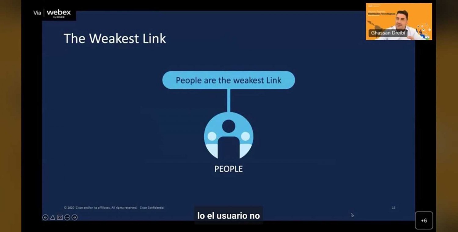 Según el Director de Ciberseguridad para Latinoamérica de Cisco, Ghassan Dreibi, el 40 por ciento de la seguridad de una empresa depende de la tecnología, el otro 60 es de las personas y su ciber educación.