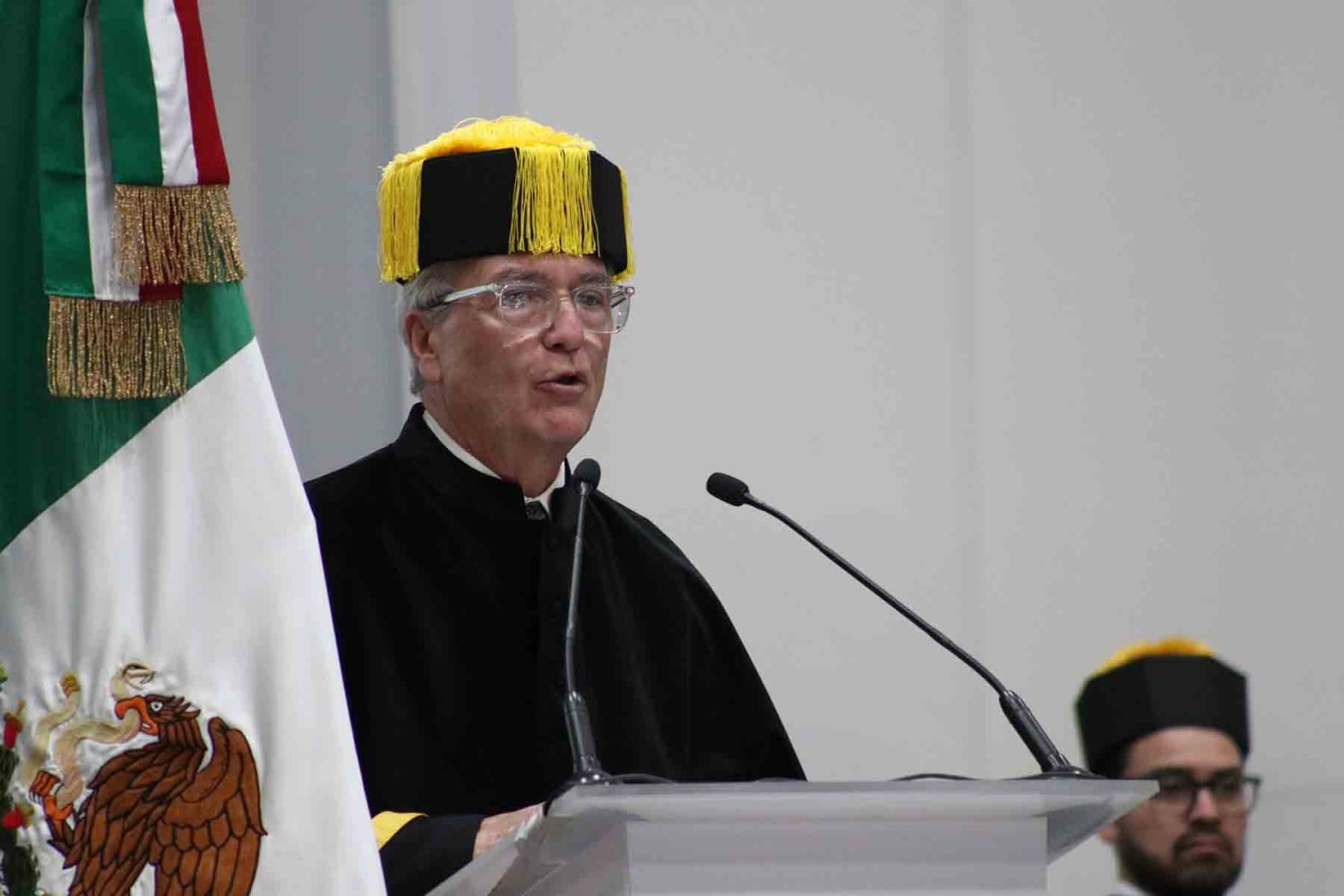 El Dr. Alfonso Petersen Farah, Vicerrector Académico y de Ciencias de la Salud y quien también fue padrino de generación, dirigió un mensaje lleno de reflexión y orgullo a los egresados, donde reconoció su compromiso con la educación, la ciencia, la innovación y la investigación.
