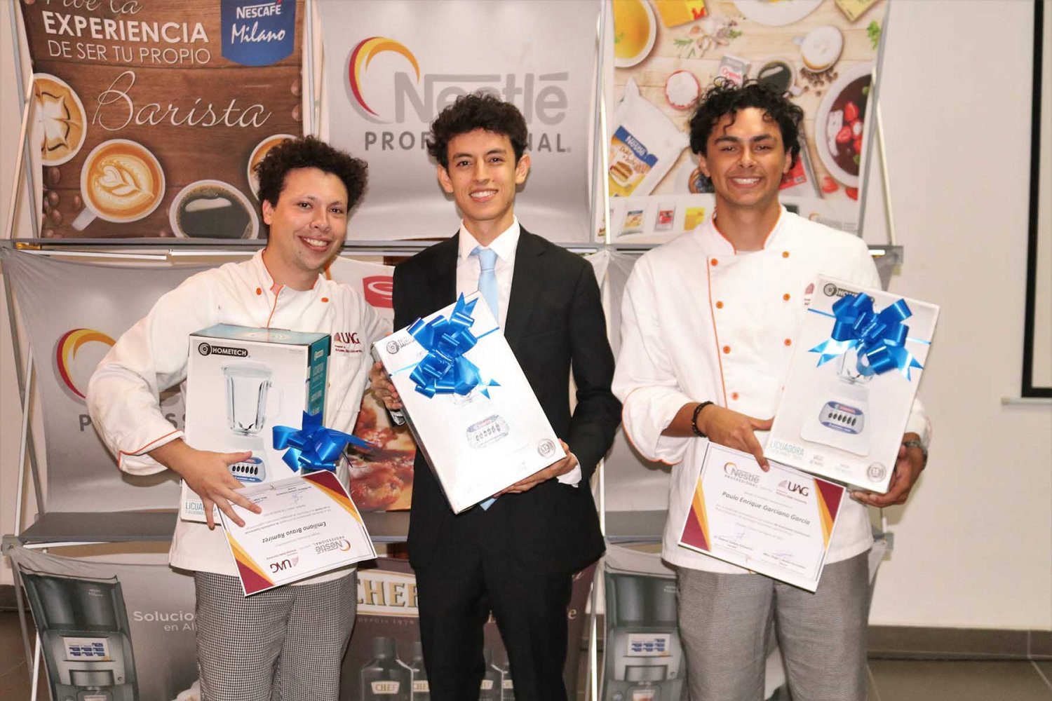 Luego de que todos los equipos presentaran sus propuestas, los jueces deliberaron y equipo ganador fue el compuesto por Azor Sebastián Sánchez, de Mercadotecnia y Relaciones Comerciales, y Paulo Enrique García y Emiliano Bravo Ramírez de Negocios Gastronómicos.