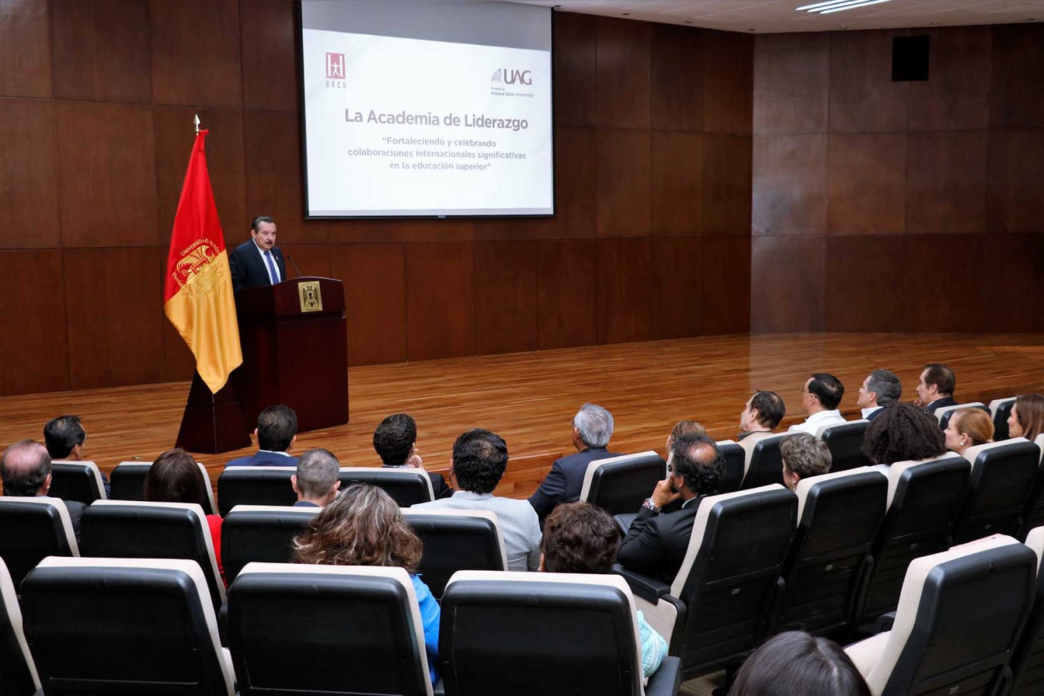 Así lo afirmó el Dr. Antonio Flores, presidente de la Hispanic Association of Colleges and Universities (HACU), durante la inauguración en la sede de la UAG del Seminario de la Academia de Liderazgo que la agrupación hispana realizó con motivo de su viaje académico a Guadalajara. El evento tuvo lugar en el Auditorio Dr. Luis Garibay Gutiérrez de la UAG y fue presidido por el Rector de la UAG, Lic. Antonio Leaño Reyes.