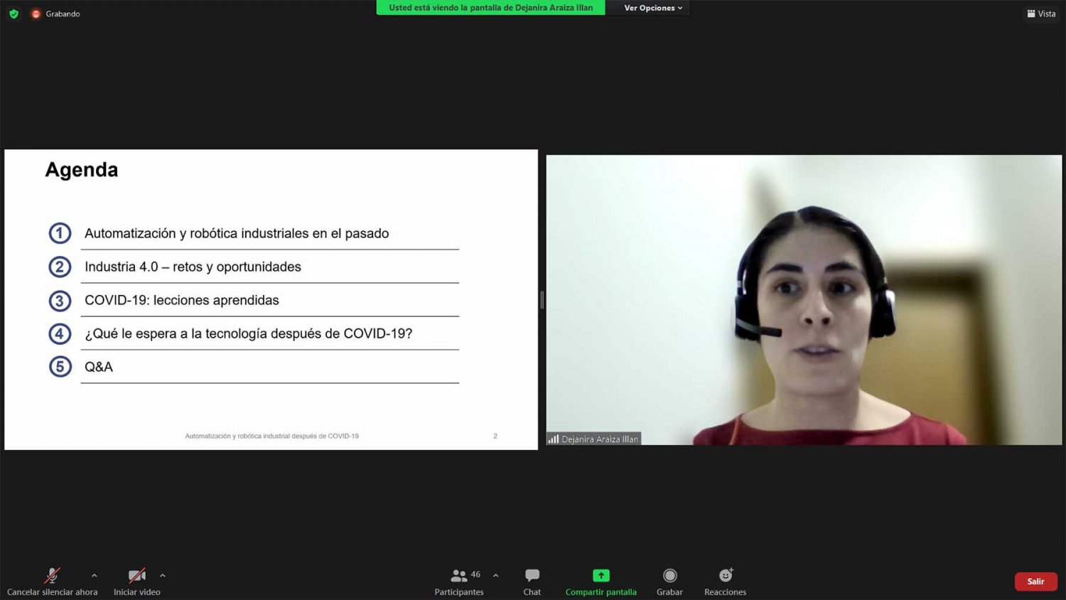 La ponente agregó que el uso de la robótica y de la automatización permitió que durante los meses de confinamiento se pudiera trabajar a distancia de manera muy efectiva y esto ayudó a que muchas empresas se sumaran al trabajo en casa.