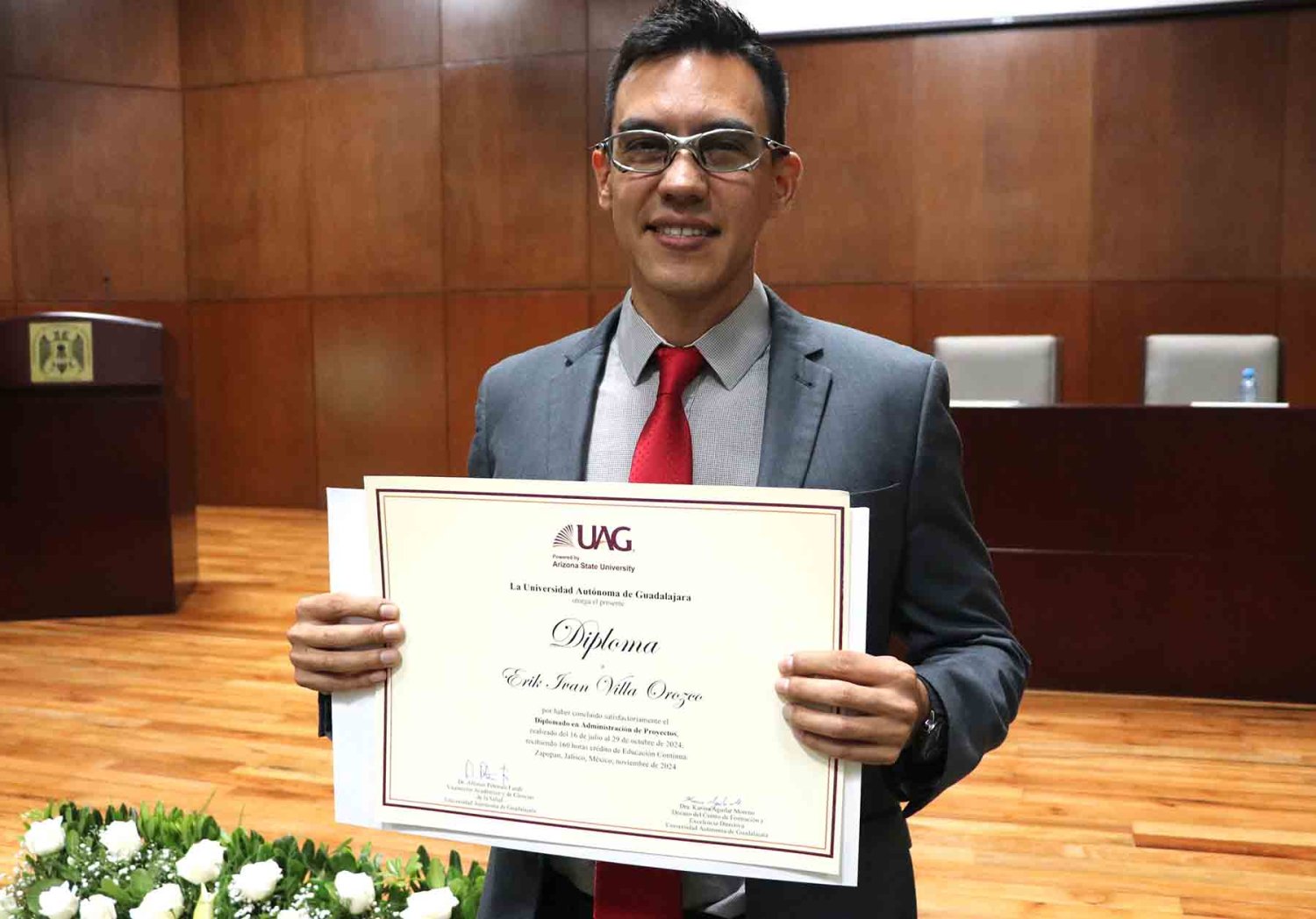 La Universidad Autónoma de Guadalajara (UAG) celebró la ceremonia de clausura del Diplomado en Administración de Proyectos impartido por Educación Continua, en una emotiva ceremonia realizada en el “Dr. Luis Garibay Gutiérrez”.