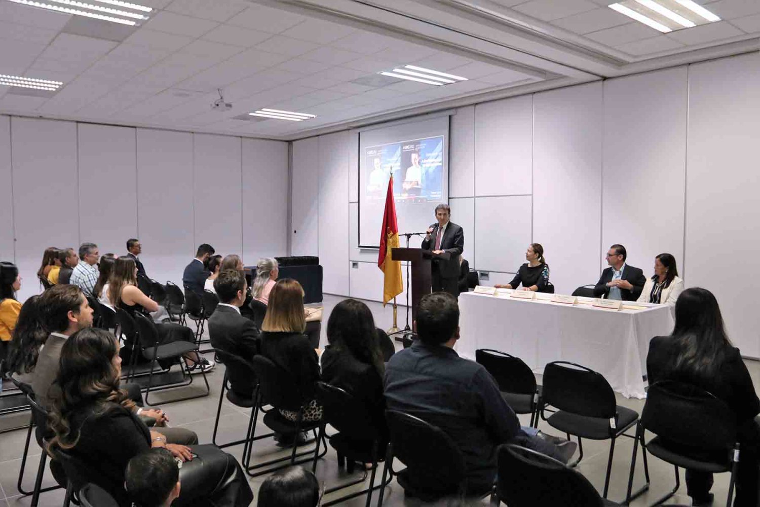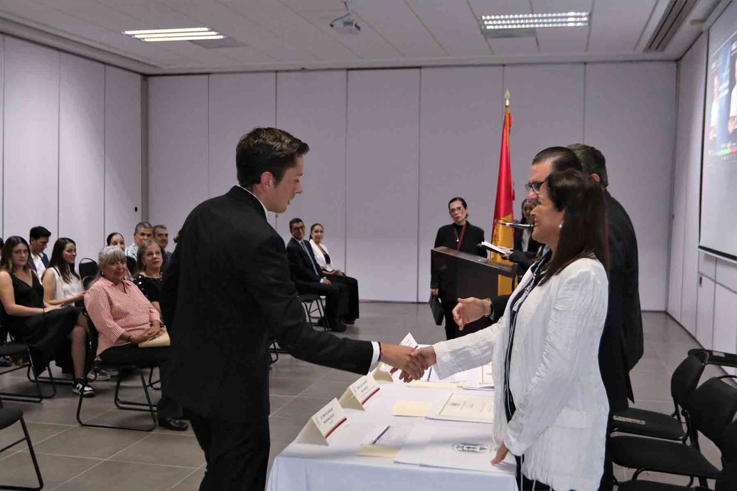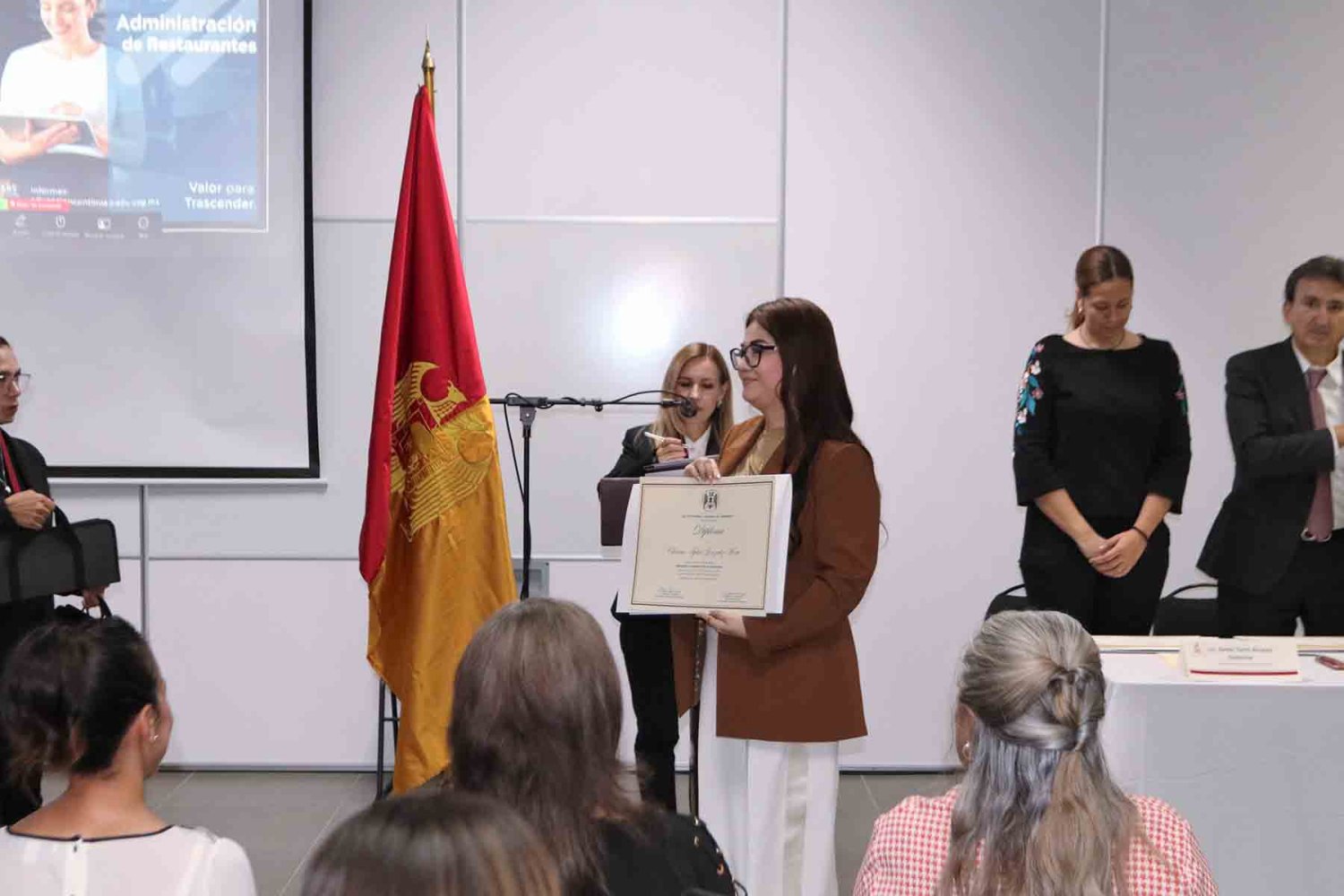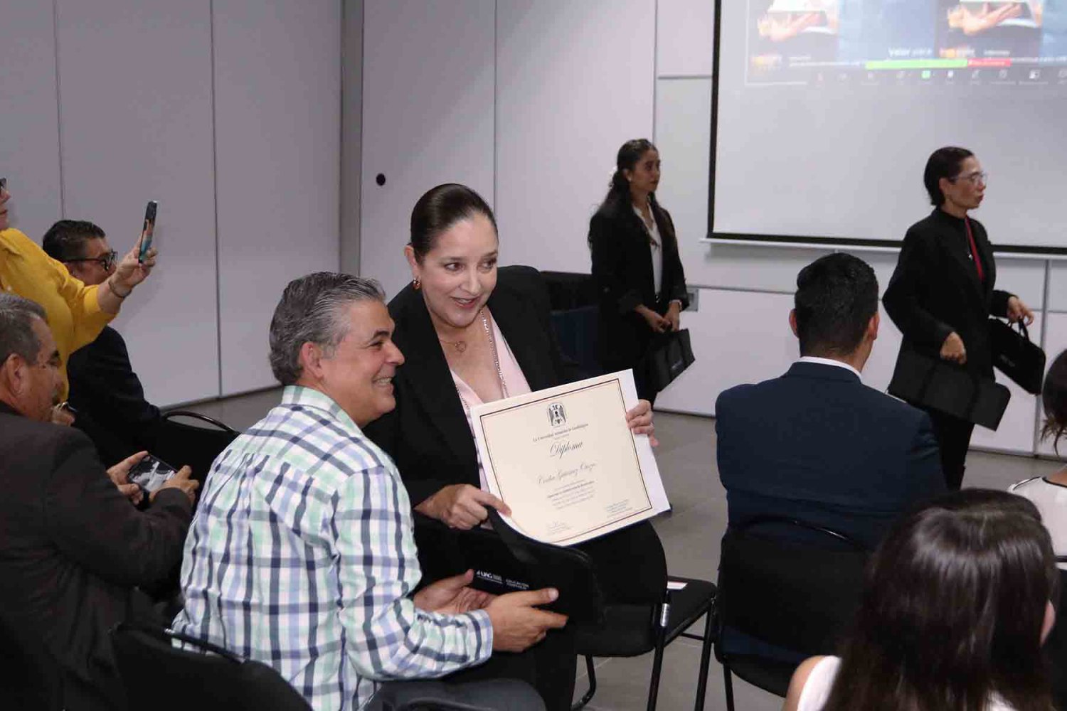 En el evento estuvo presente el Lic. Francisco Javier Jiménez Rojas, Coordinador de Certificación y Formación Profesional de esta universidad; el Mtro. Luis Fernando Aviña Garnica, Jefe de Educación Continua en Humanidades; la Lic. Saida Yarim Álvarez Gutiérrez, Jefa del Centro Internacional de Idiomas; y la Lic. María Guadalupe Hernández Osuna, representante de los docentes del diplomado.