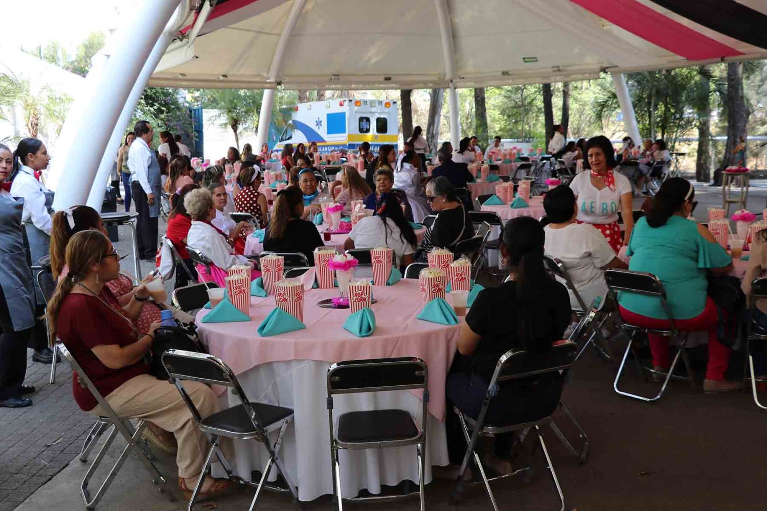 Este año la temática del evento fue de Vaselina y hubo una serie de sorpresas para empezar, las mamás fueron recibidas con refrescantes tejuinos, luego degustaron de una hamburguesa con crujientes papas a la francesa, así como deliciosas bebidas y postres.