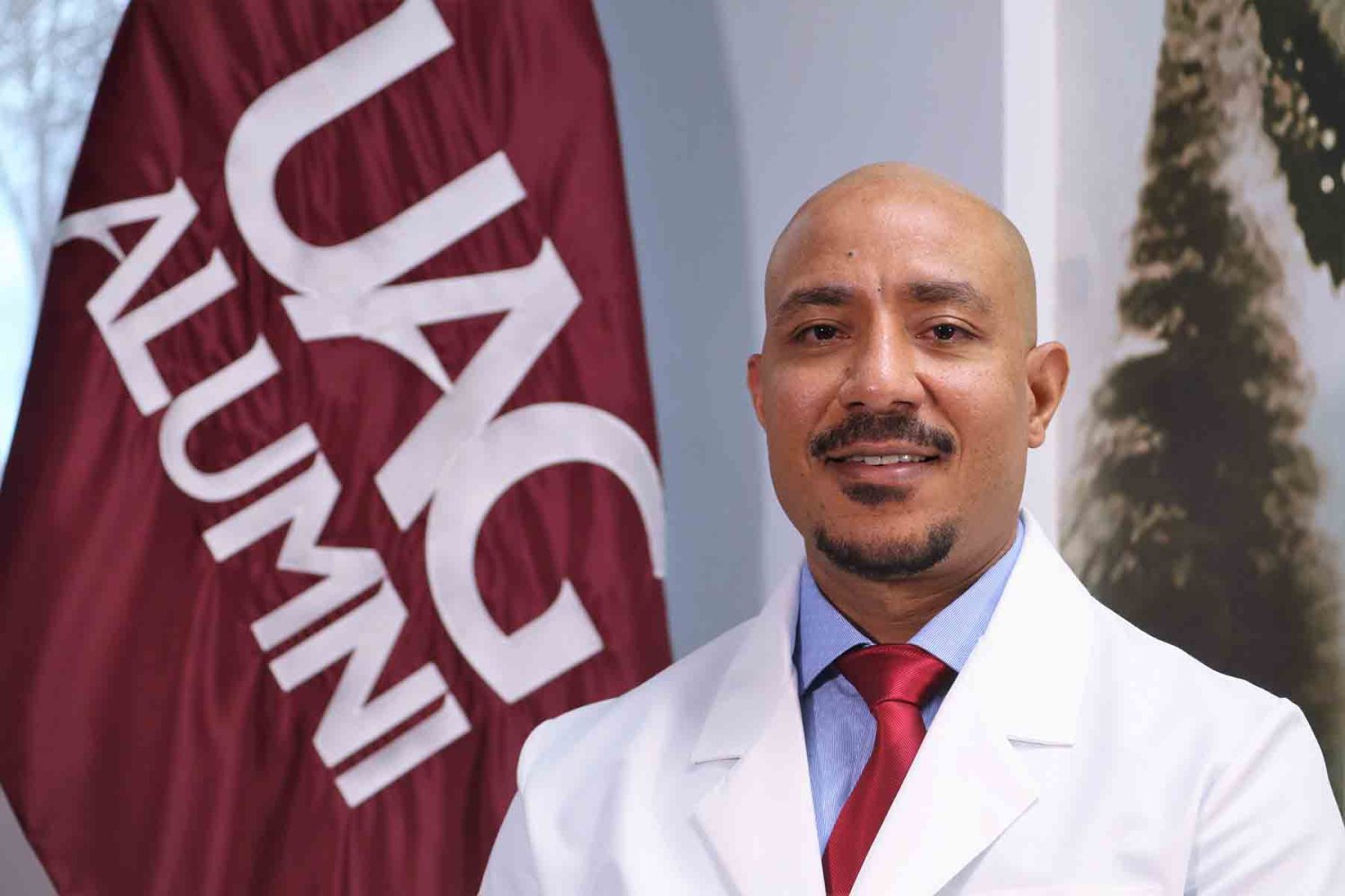 Egresado de la UAG, destaca por su trayectoria internacional, especialista en Medicina Interna y su compromiso con la formación de la comunidad médica.