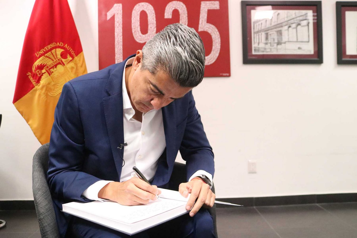 Al finalizar la ronda de preguntas, el Dr. Hugo de la Rosa Peñaloza, Vicerrector Académico de la UAG, entregó un reconocimiento a los participantes y también les entregó una chamarra distintiva de esta institución.
