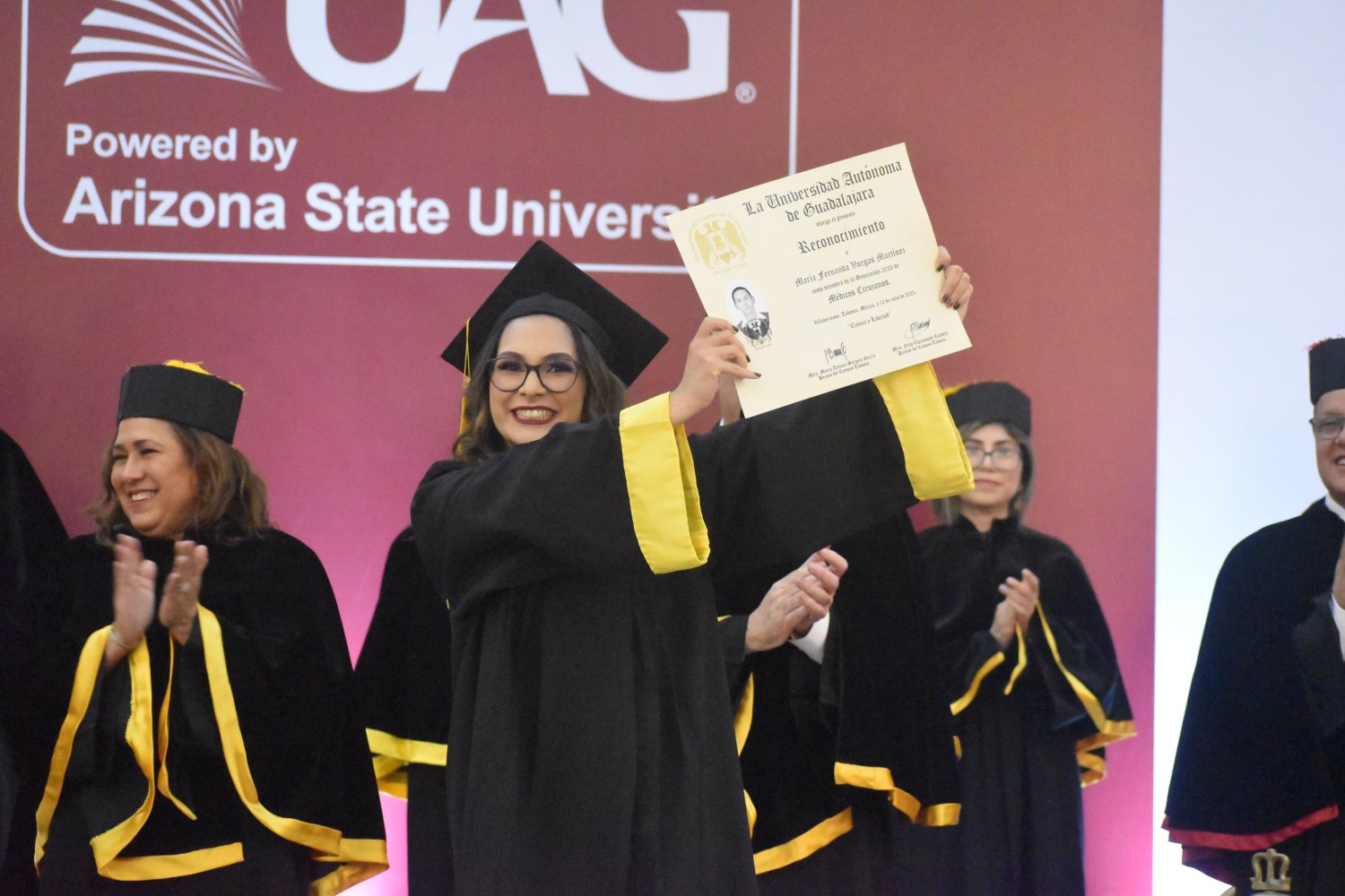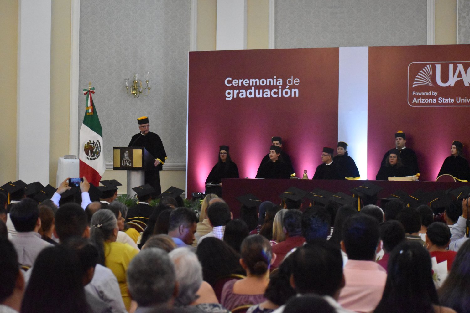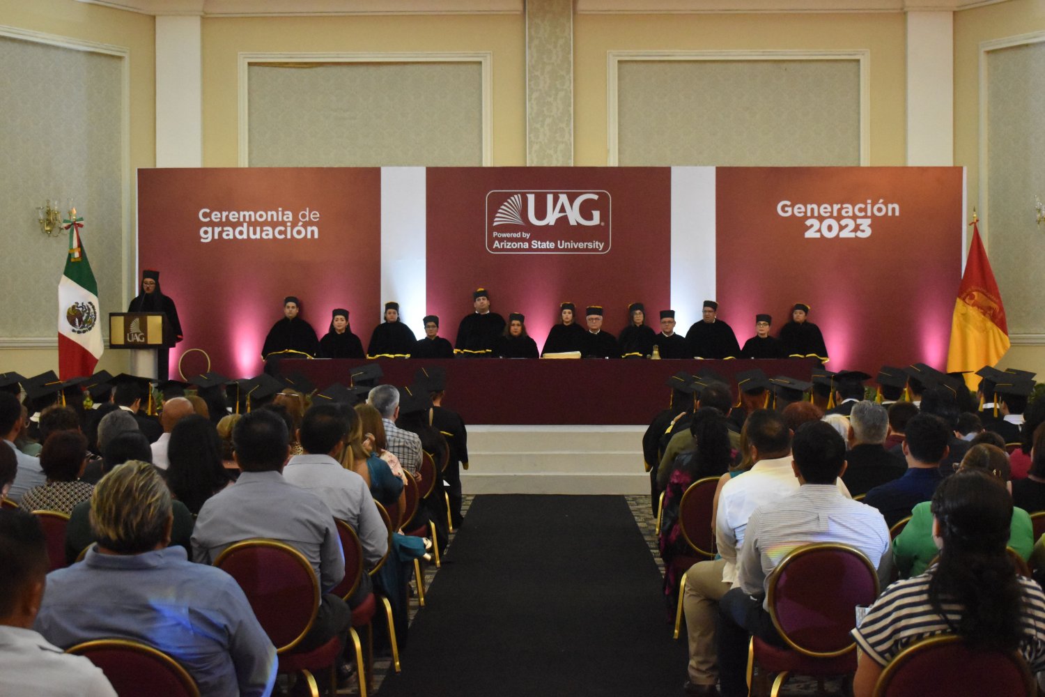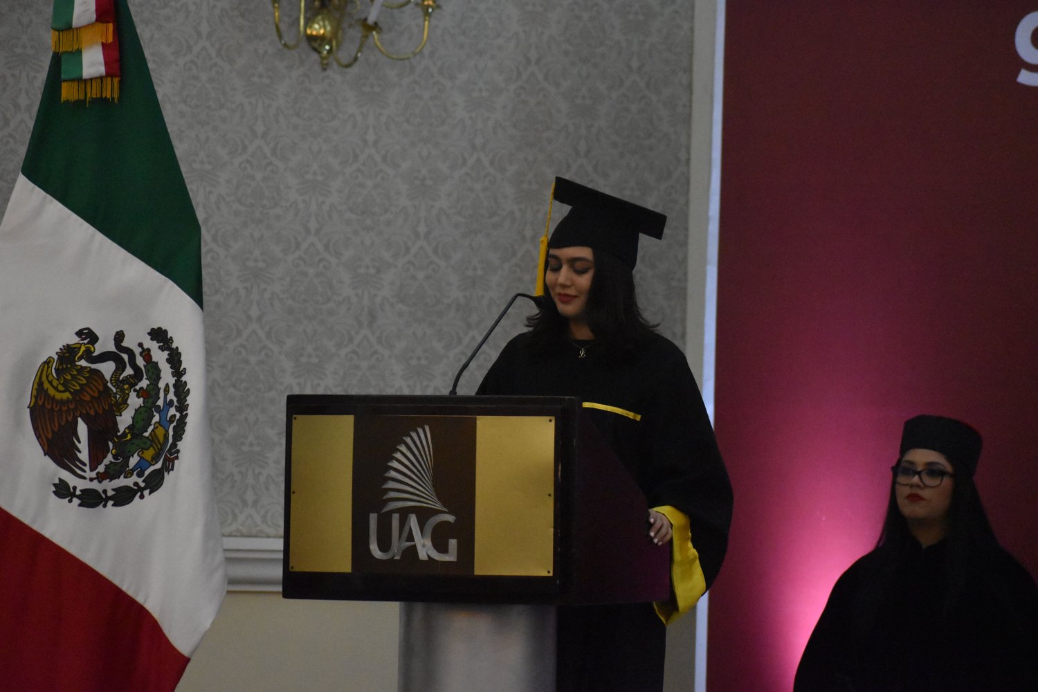 La ceremonia fue presidida por destacadas personalidades, entre las que se encontraban la Dra. Rosario Zapata Vázquez, quien tuvo el honor de ser la Madrina de Generación. También estuvieron presentes el Mtro. Felip Claramonte Candela, Director de la UAG Campus Tabasco, el Dr. Alfonso Petersen Farah, Vicerrector de Ciencias de la Salud y Representante del Lic. Antonio Leaño Reyes, Rector de la UAG, la Mtra. Brenda Villareal Marín, Directora de Formación Integral y Gestión Académica, la Dra. Yadira Guadalupe Payró Ramos, Directora de Programas de Ciencias de la Salud de la UAG Campus Tabasco, y la Mtra. Adriana Castro Vera, Presidente del Capítulo UAG Alumni Tabasco.