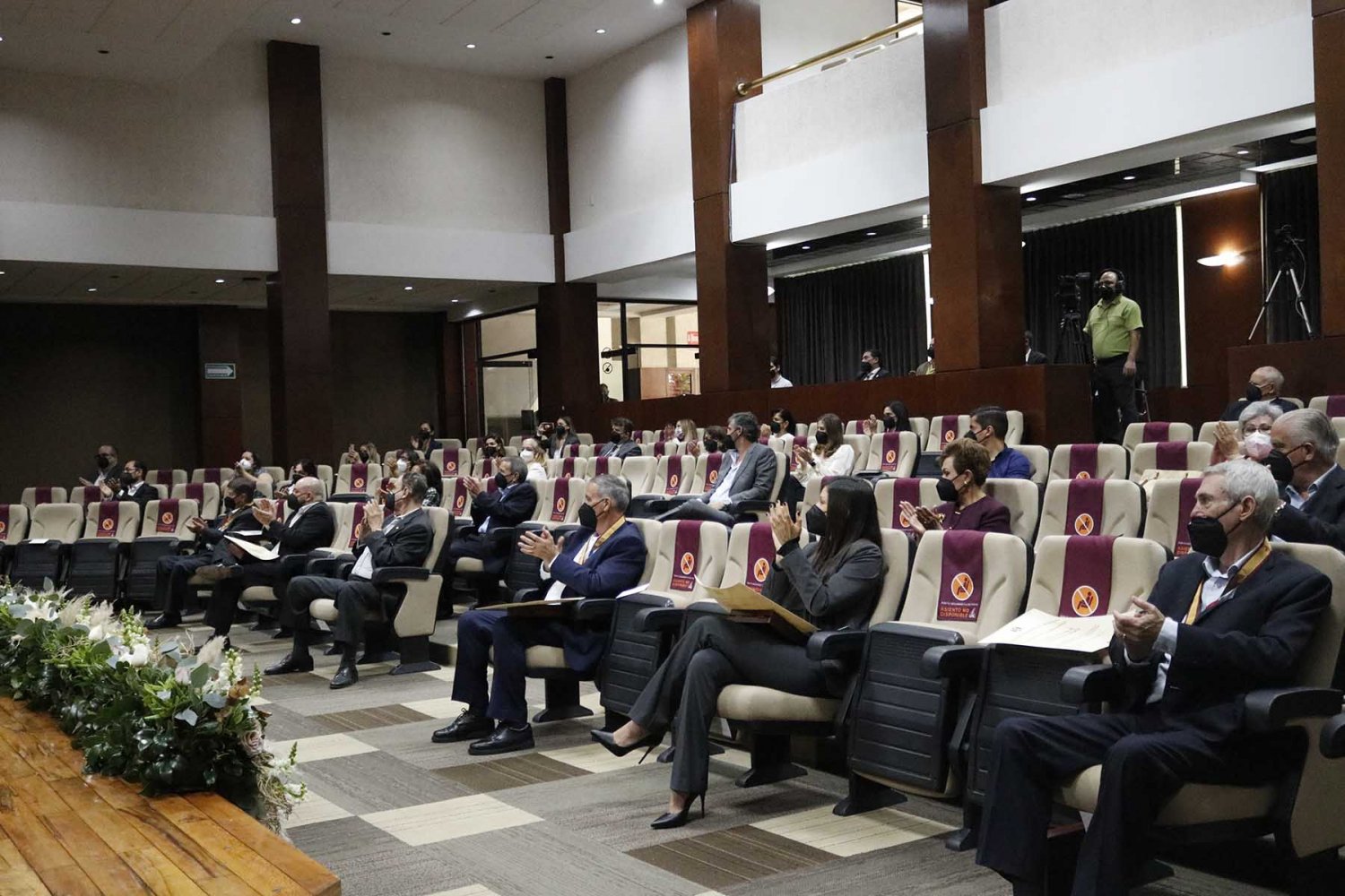 El evento, que se llevó a cabo en el auditorio “Dr. Luis Garibay Gutiérrez” fue presidido por el Rector, Lic. Antonio Leaño Reyes, quien estuvo acompañado por el Vicerrector General, Lic. Antonio Leaño del Castillo; el Vicerrector Académico, Dr. Hugo de la Rosa Peñaloza; el Vicerrector de Ciencias de la Salud, Dr. Alfonso Petersen Farah; y el Secretario General, Lic. Ricardo Beltrán Rojas.