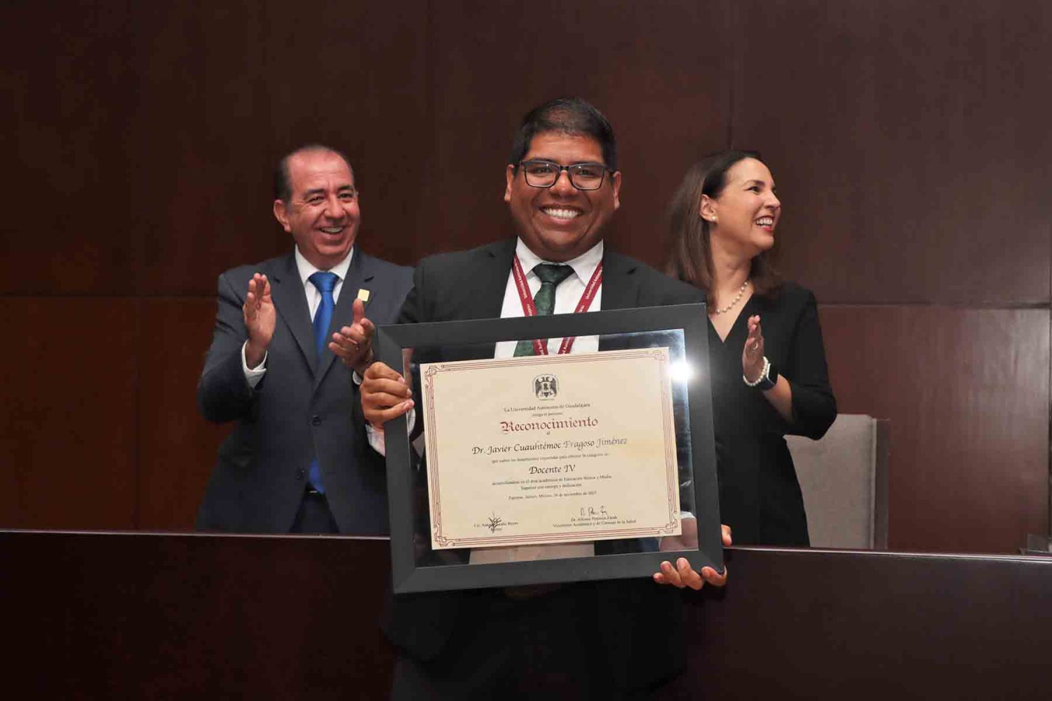 En nombre del comité evaluador, el Dr. Carlos Javier Escudero Santiago, compartió un mensaje en el que expresó que este es un reconocimiento institucional al desarrollo profesional y académico de más de 50 profesores que se postularon, quienes son valorados por su dedicación y compromiso.