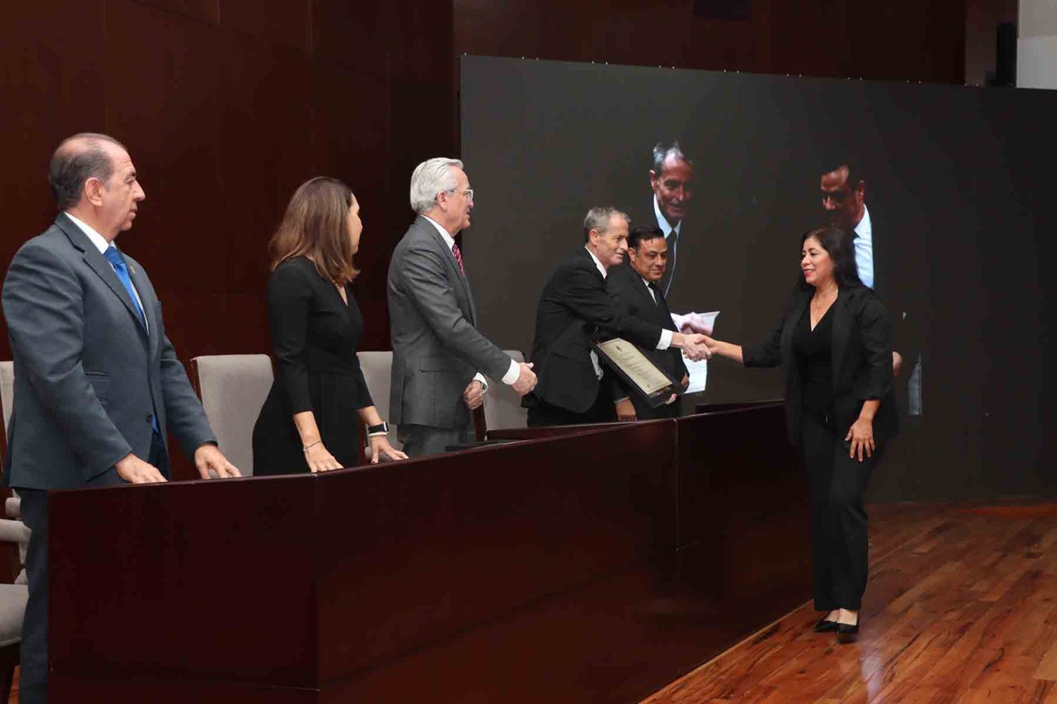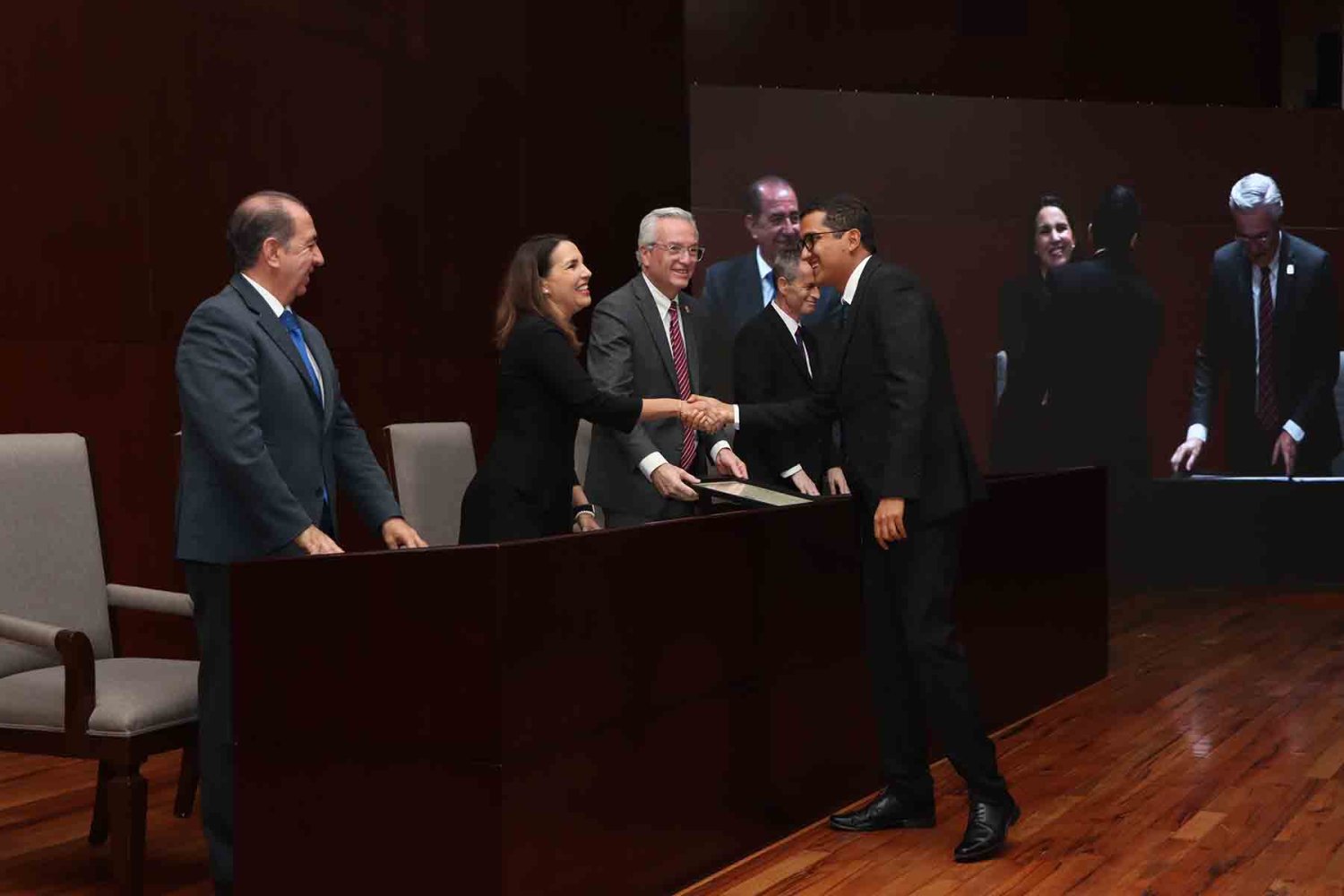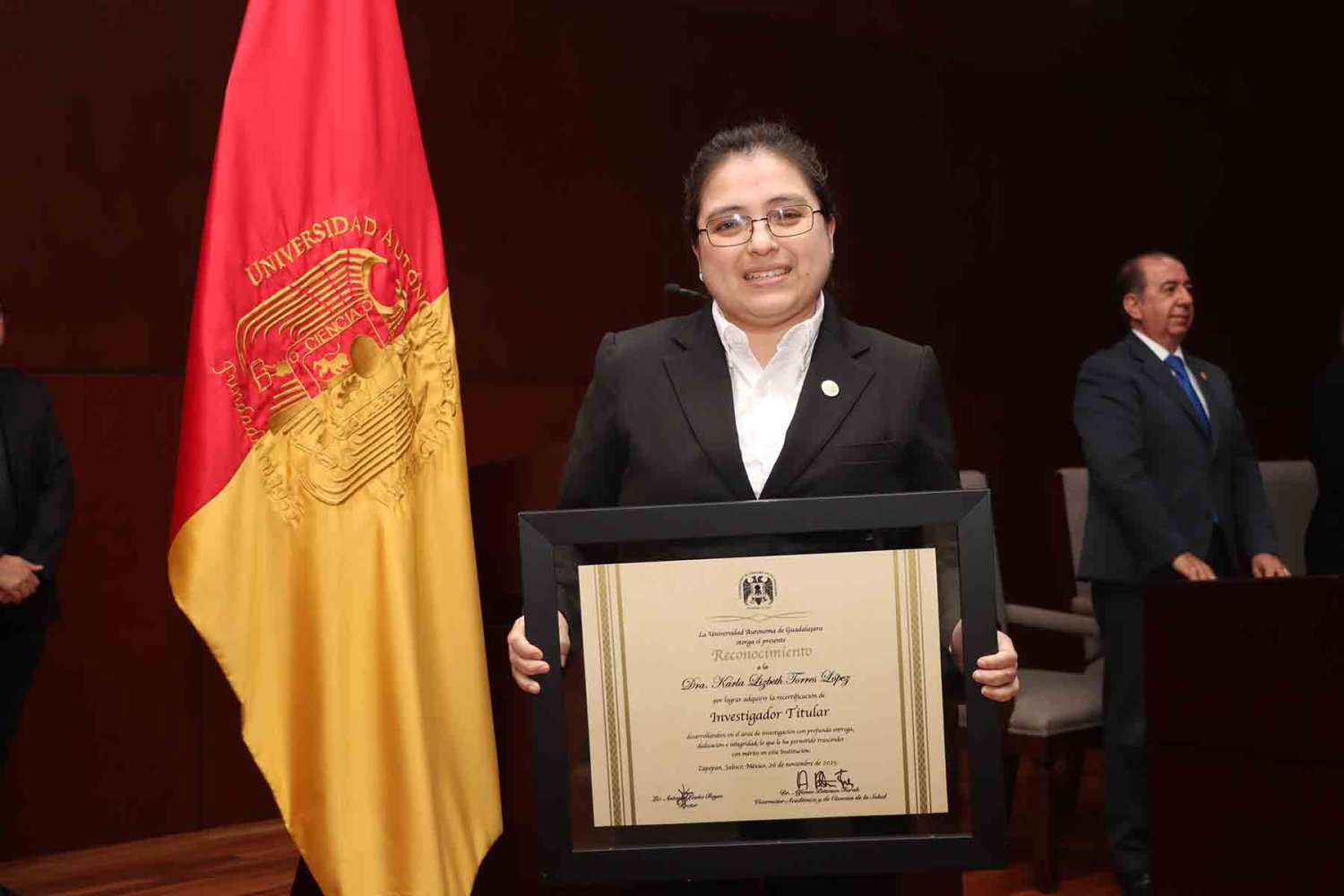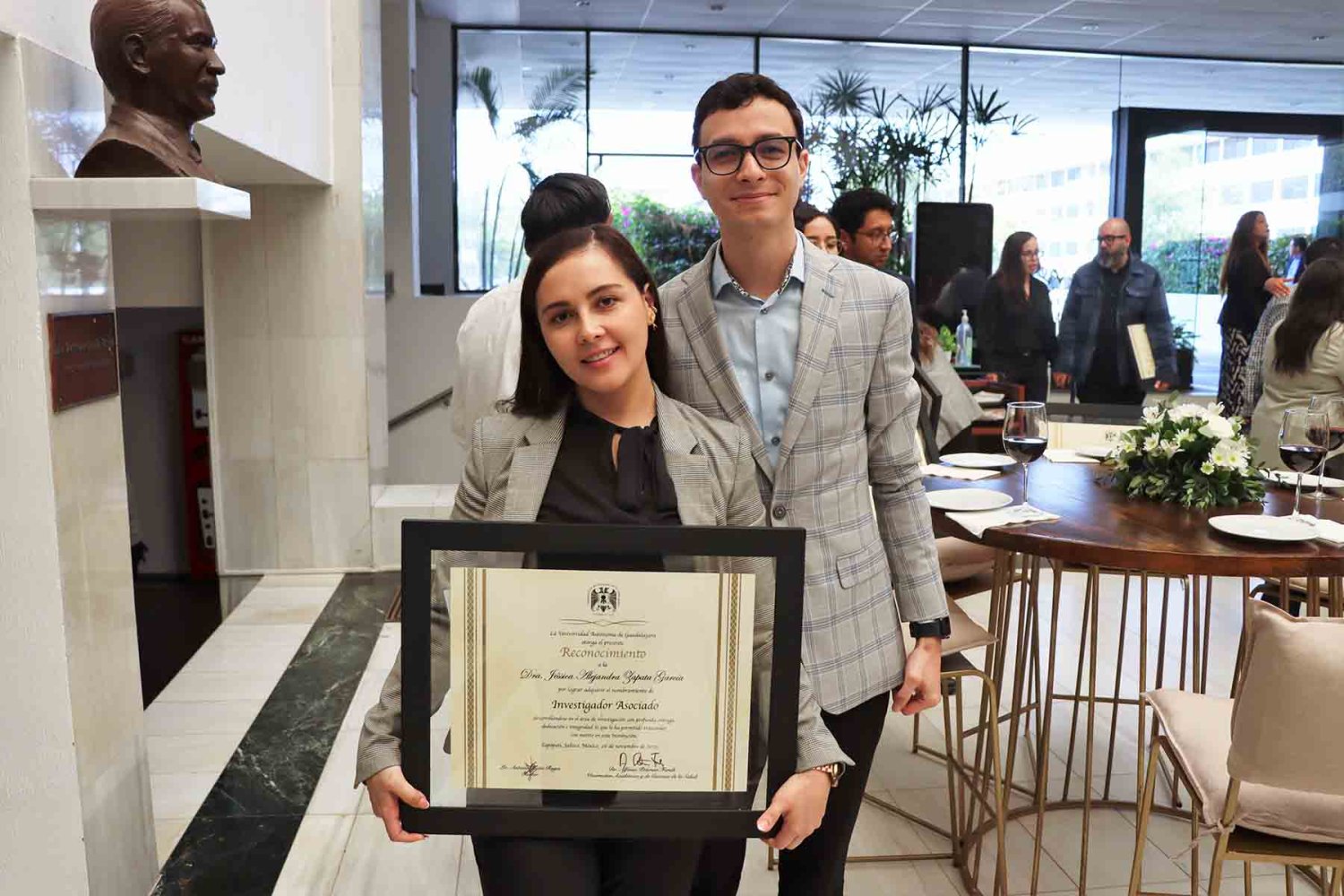 Al terminar el evento, hubo una fotografía del recuerdo que se realizó en las escaleras de la Biblioteca y un coctel de honor en el Patio de Rectoría de la UAG.