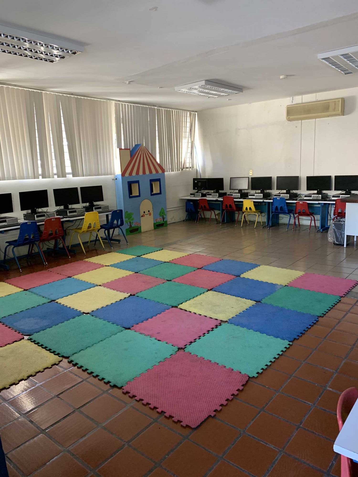 En Preescolar cuentan con un laboratorio de cómputo, asimismo, se les brinda inglés 10 horas a la semana y egresan de preescolar hablando y escribiendo en español.