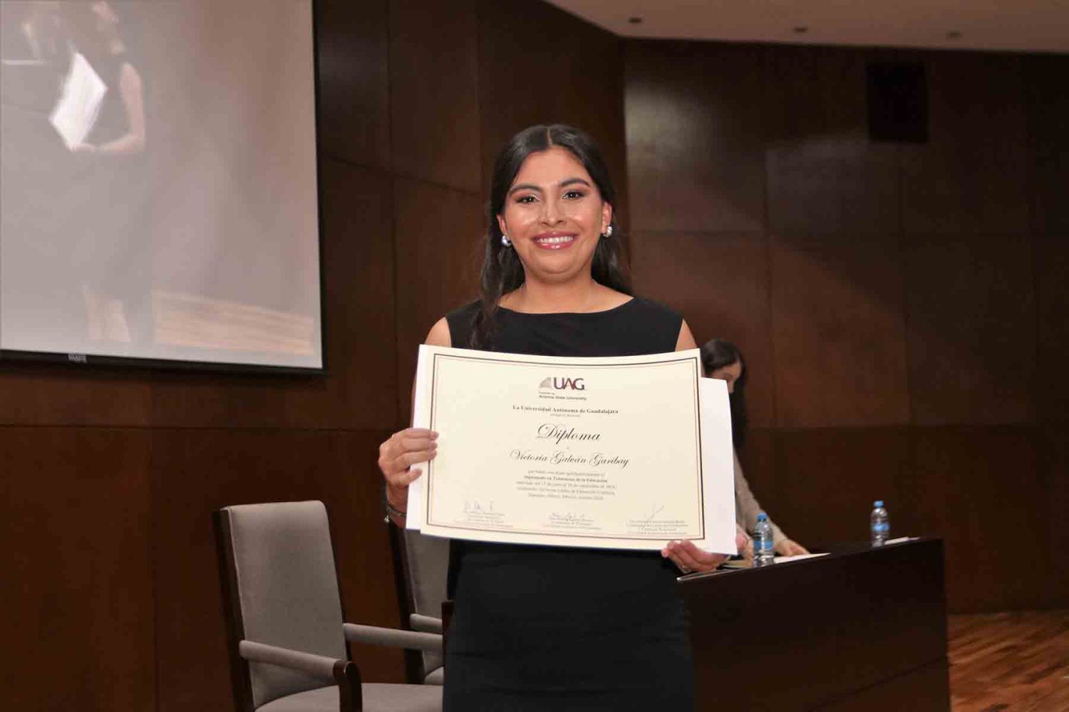 La ceremonia de clausura se realizó Auditorio “Dr. Luis Garibay Gutiérrez” y asistieron la Dra. Karina Aguilar Moreno, Coordinadora de Posgrados, el Dr. Guillermo Cambero Quezada, Director de Posgrados en Humanidades, y la Mtra. Ana Karol López Rojo, Jefa de Certificaciones y Reconversiones.
