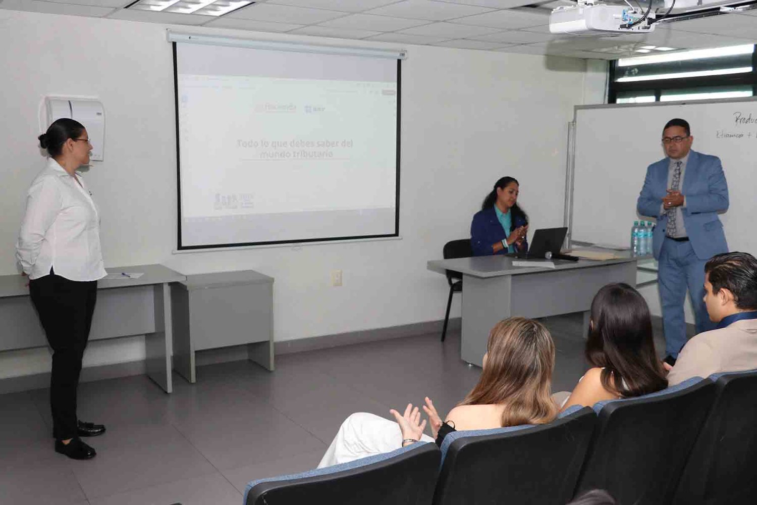 Alumnos de primer y tercer semestre asistieron a charla con una experta del Servicio de Administración Tributaria (SAT).