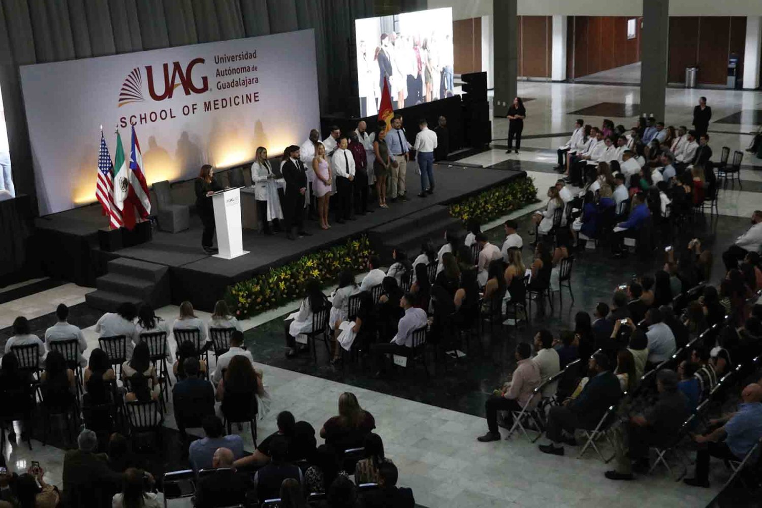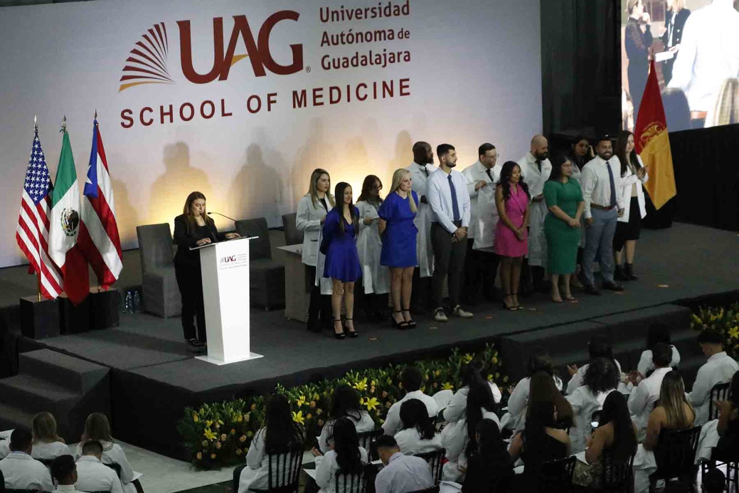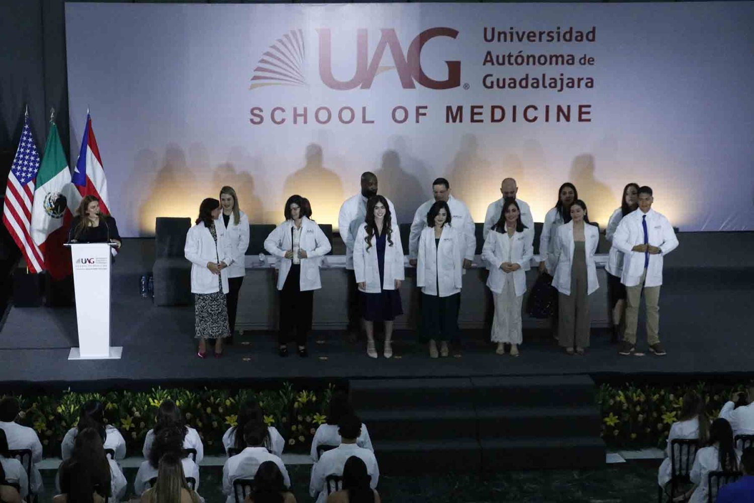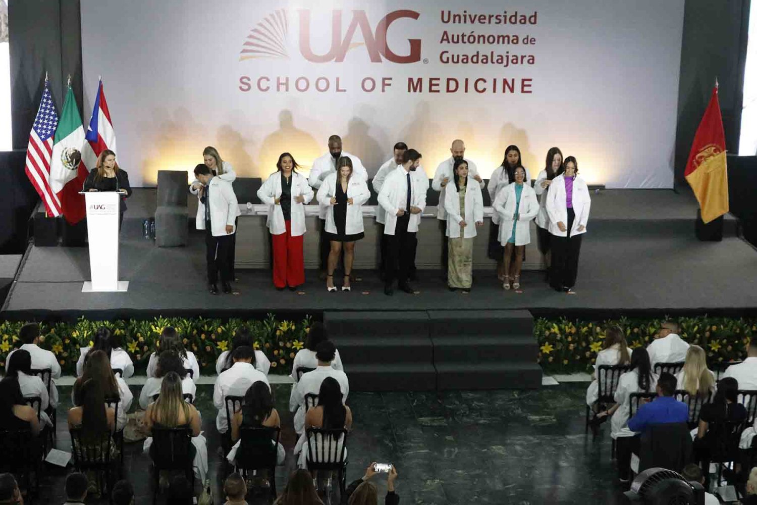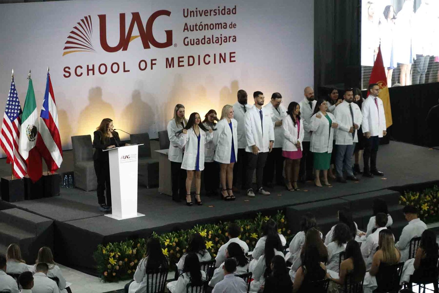 El Programa Internacional de Medicina (PIM), de la Universidad Autónoma de Guadalajara (UAG), entregó la primera bata blanca a los estudiantes de Estados Unidos y Puerto Rico que iniciaron sus estudios en esta institución.