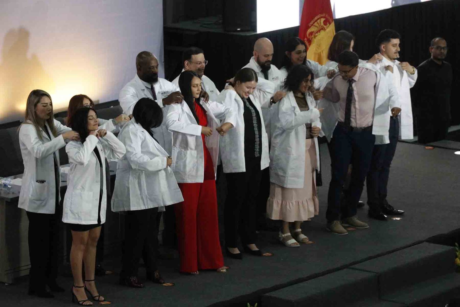“La bata blanca significa profesionalismo, es el símbolo de la compasión, también es el símbolo de la confianza que se deben ganar con sus pacientes”, dijo. “Ahora ustedes están iniciando un noble camino y esta bata blanca es el símbolo de su inicio”.